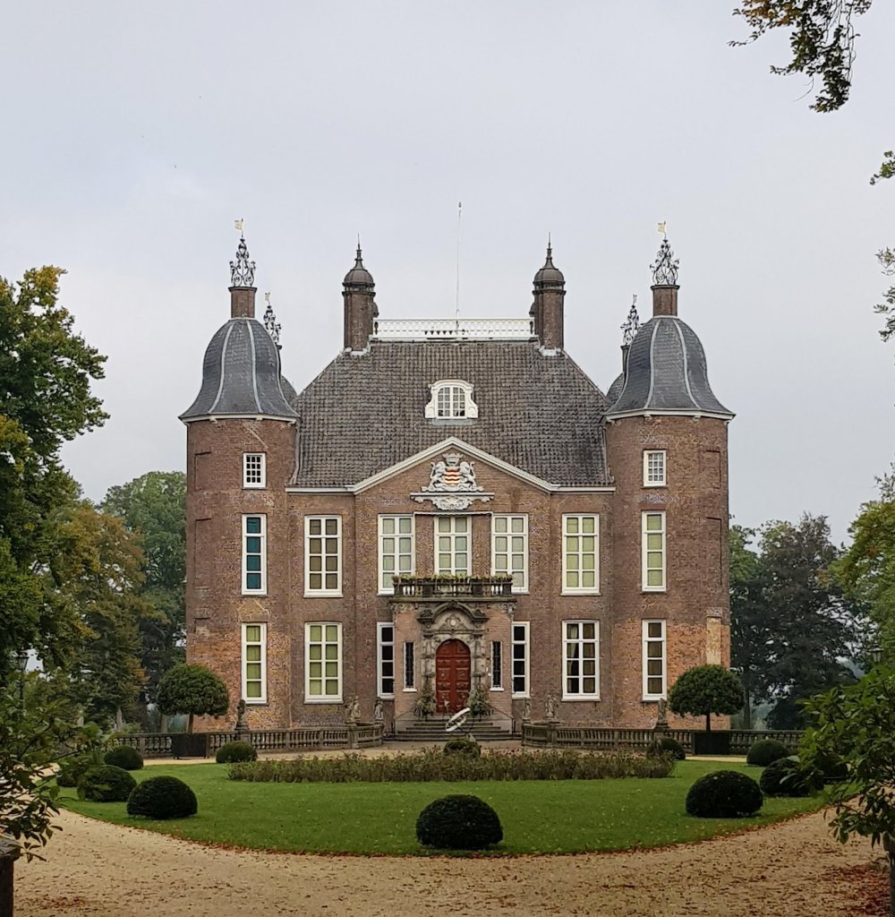 Nu was het nog even flink klimmen tot een cirkel met bank en daarna natuurlijk weer dalen. Het laatste stuk ging over “Landgoed Biljoen” met zijn prachtige kasteeltje.