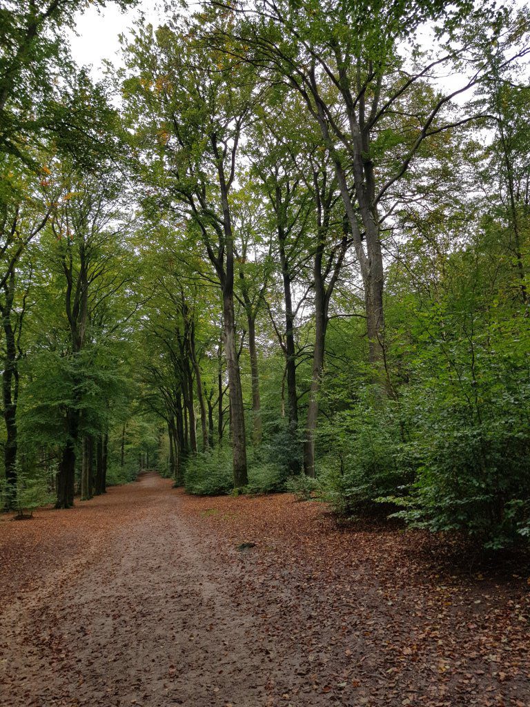 Zaterdag hebben we de trage tocht Veluwezoom gelopen vanuit Dieren. We begonnen bij Polysport en liepen al gauw over de lange Koningslaan, een smalle beukenlaan die vroeger de Oranjes van het ene jachthuis in een zo recht mogelijke lijn naar het volgende jachthuis bracht.