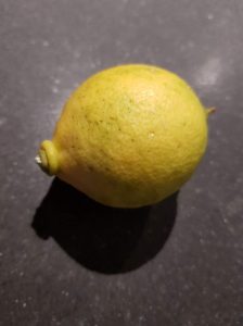 Afgelopen jaar hadden we een citroenboompje gekocht en zowaar, we konden een citroen plukken.