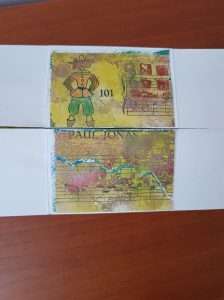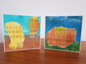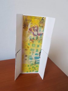 Woensdag kwam dochter uit Utrecht gezellig een dagje, we hebben een korte wandeling gemaakt en toen ze hoorde dat Aat erwtensoep zou maken bleef ze ook eten. Donderdag kwam Mieke weer hobbyen, ook deze keer gebruikten we de gelli plate. Eerst verfden we allerlei ondergronden waarvan we later een squash boekje maakten naar dit voorbeeld, wat ik een paar jaar geleden had gemaakt.