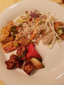 ’s Avonds hebben we eten laten bezorgen door eetcafé Bruut, een Thaise rijsttafel met 8 verschillende gerechten. Het smaakte allemaal prima, al kregen we niet alles op, zo kunnen we morgen met iets erbij nog een keer genieten.