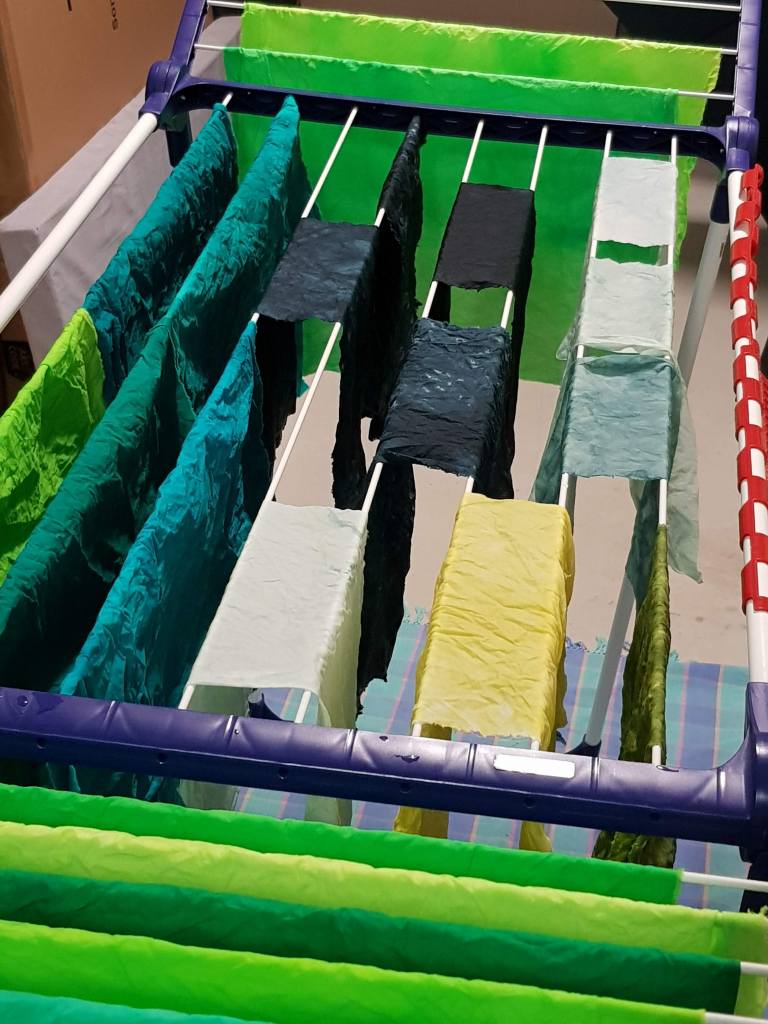 Tot slot heb ik de restjes verfoplossing over een paar lapjes gegooid met dit als resultaat.