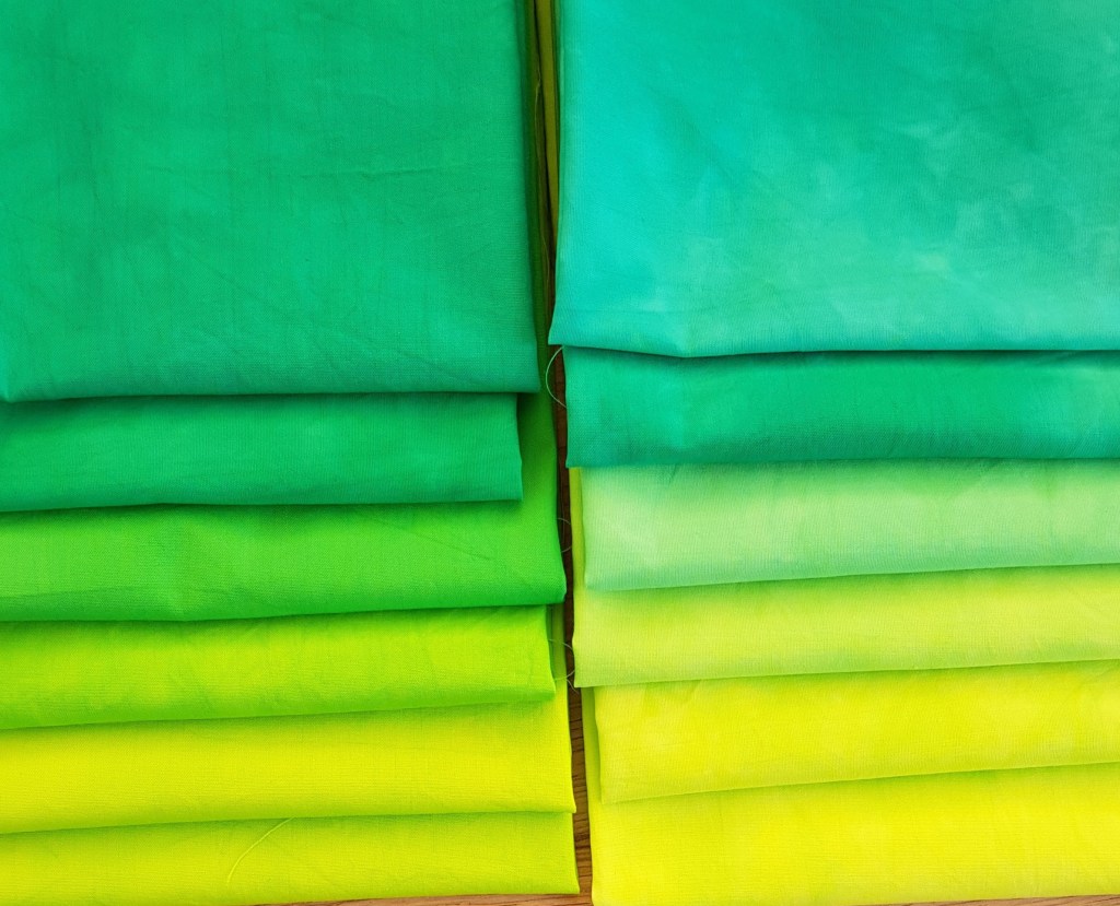Het wordt weer eens tijd om een quiltje te naaien, er zijn nog veel lege muren in huis. Natuurlijk heb ik niet genoeg stofjes in huis, haha, dus moest er geverfd worden. Donderdag heb ik een plan opgesteld en lapjes gescheurd en vrijdagmorgen kon er begonnen worden, hier staat alles klaar.