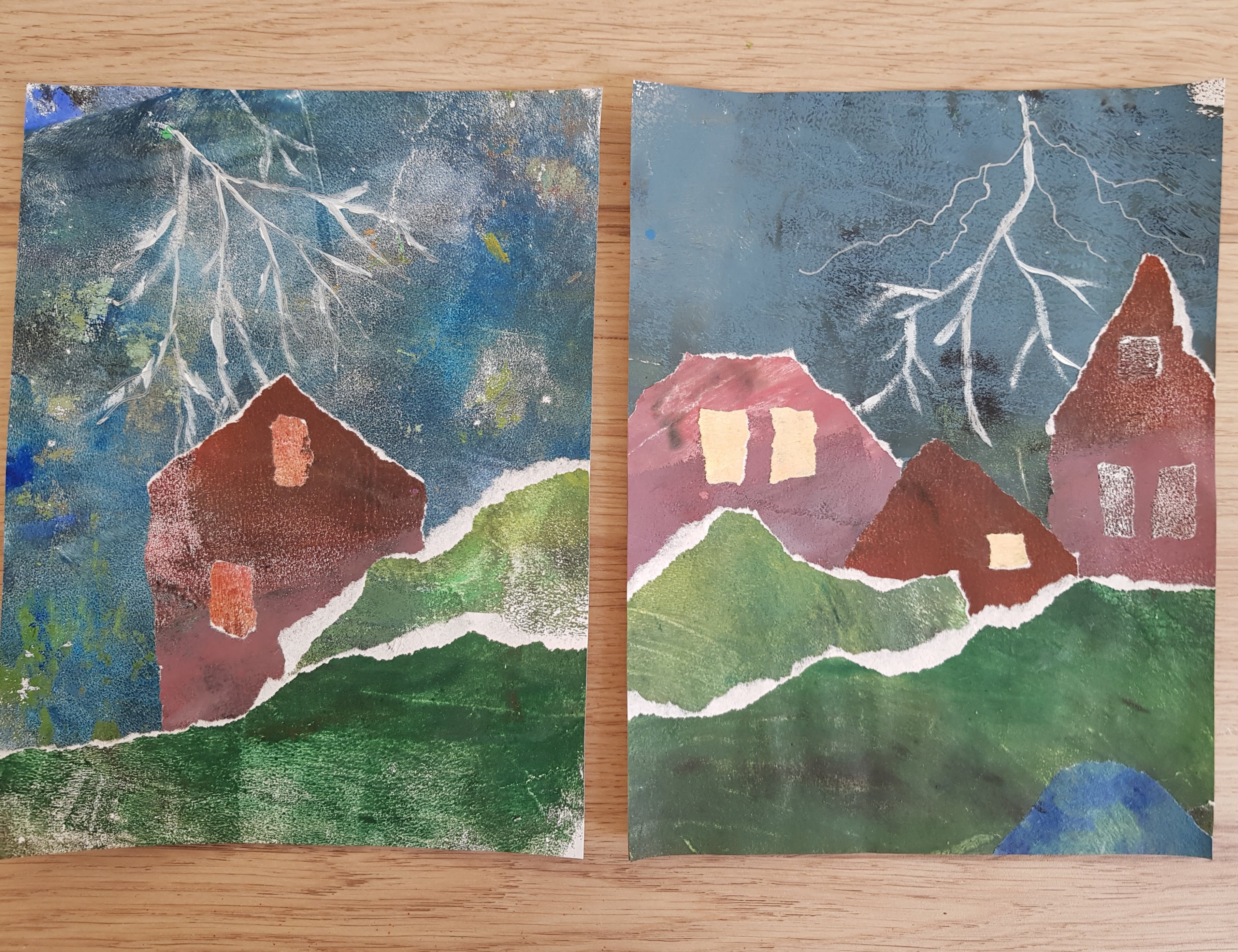 De opdracht was om papier te scheuren en daarbij ook de witte randen te gebruiken.
