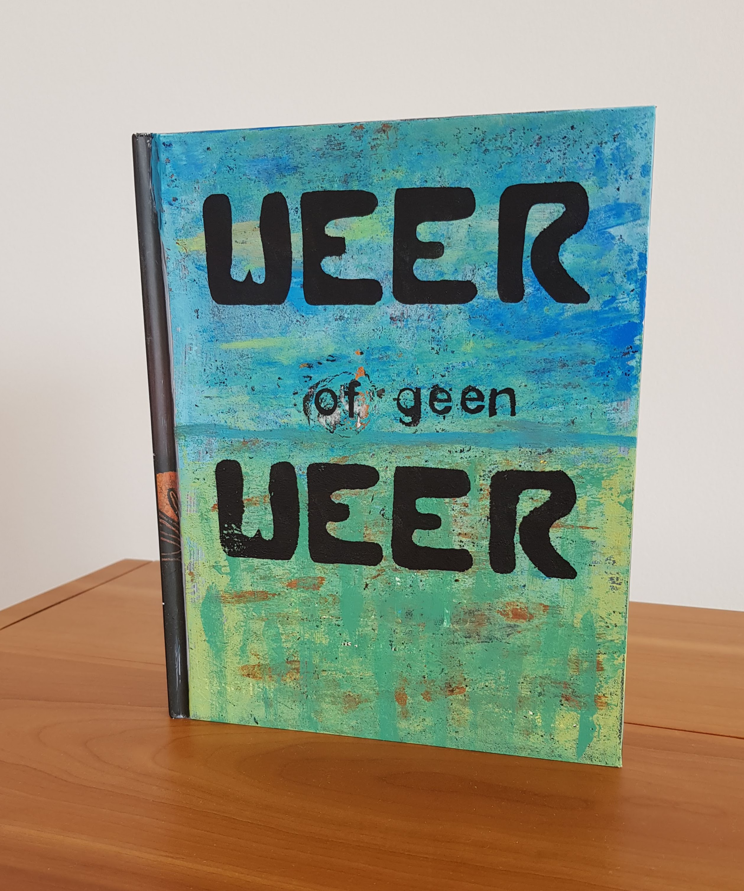 De zin komt uit een gedicht van Willem Jan Otten. Ik heb weer wat stroken gescheurd en ander materiaal toegevoegd om de rommel te suggereren die achterblijft op het strand na een harde wind.