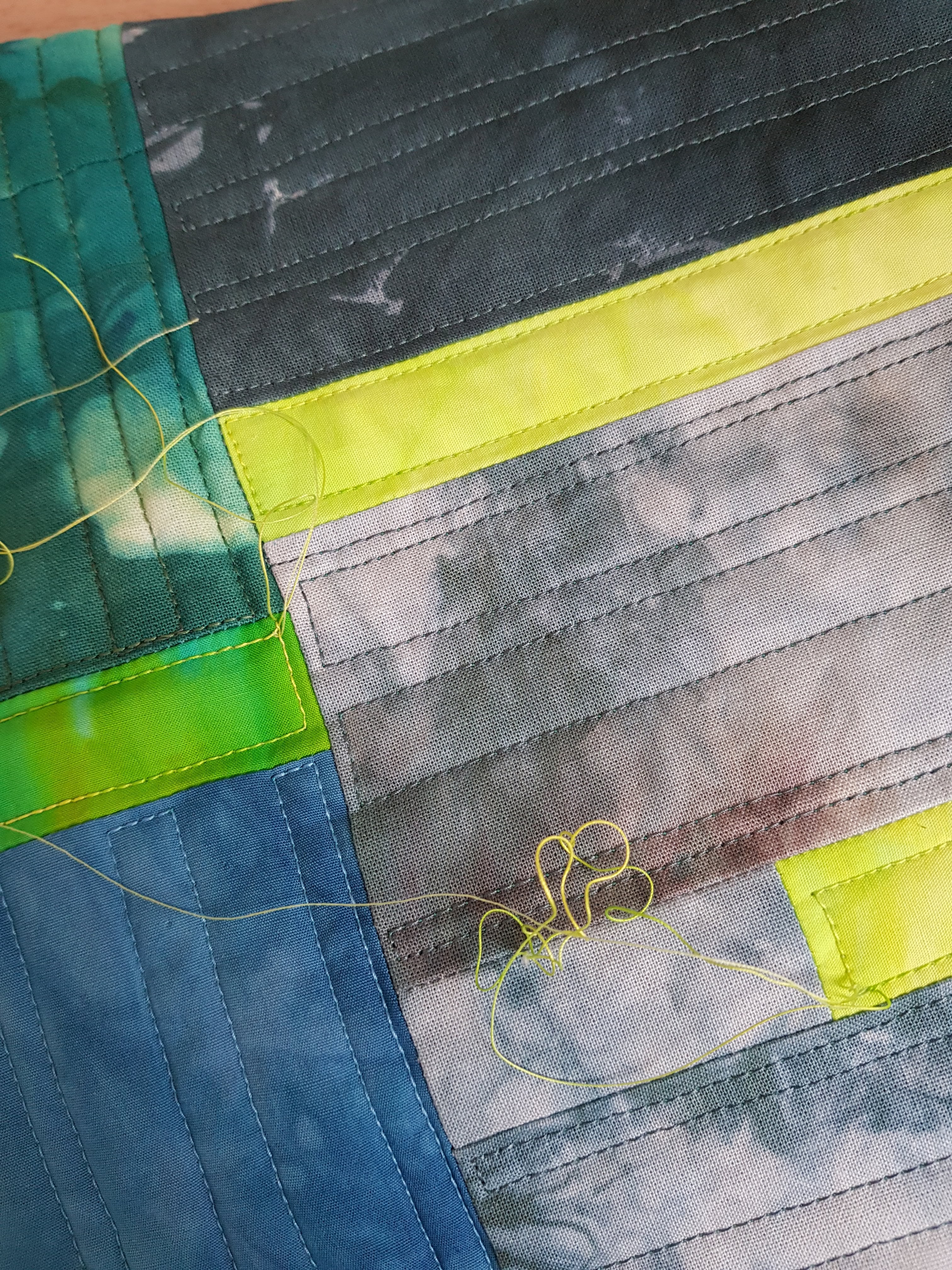 Nu ben ik bezig alle draadjes weg te werken, het zijn er heel wat! En dan moet er nog een bies om.