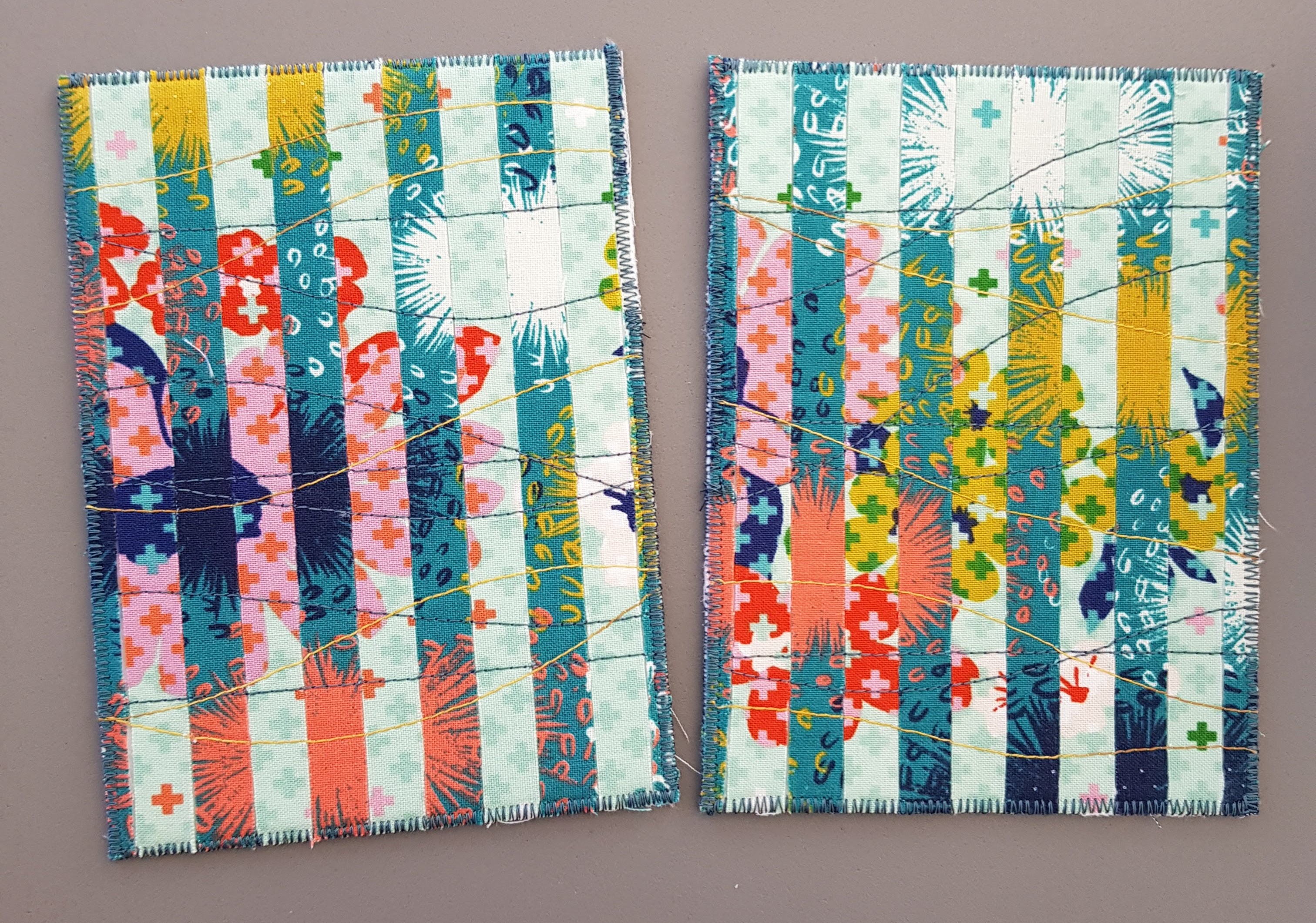 De strookjes worden dan vastgestreken op de vlieseline en daarna hebben we er kaarten van gemaakt.