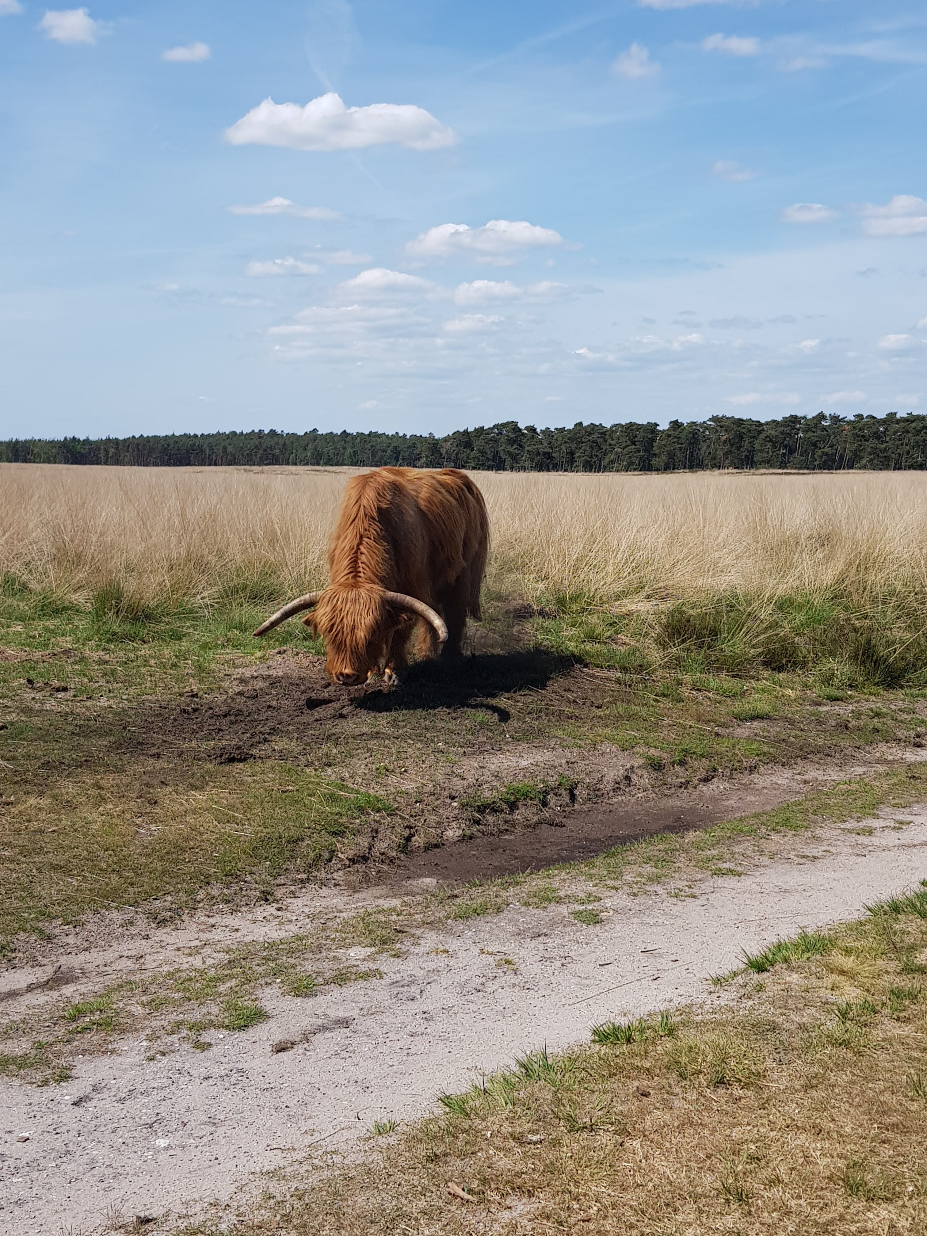 De volgende morgen vertrok Izak weer en ’s middags liepen wij een rondje Deelerwoud, waar we een eenzame Schotse Hooglander tegen kwamen.