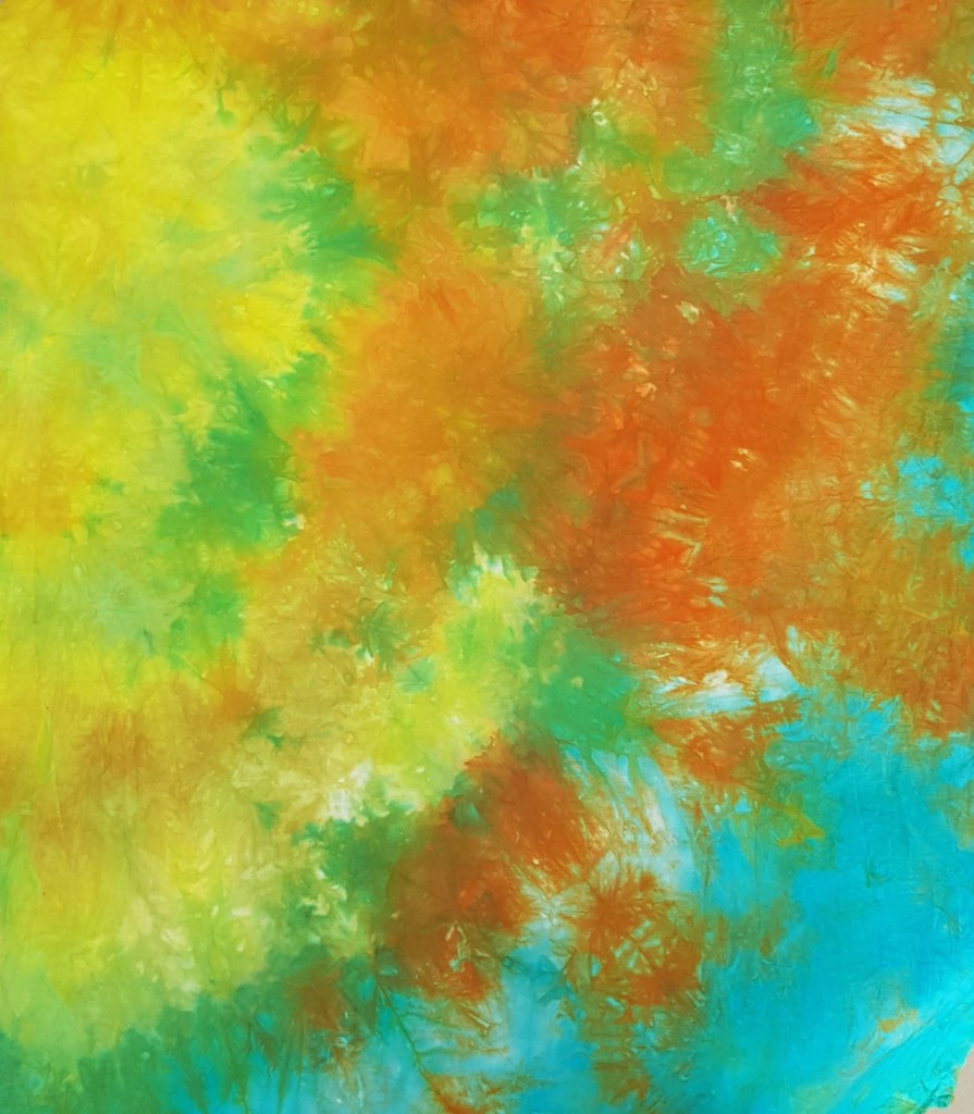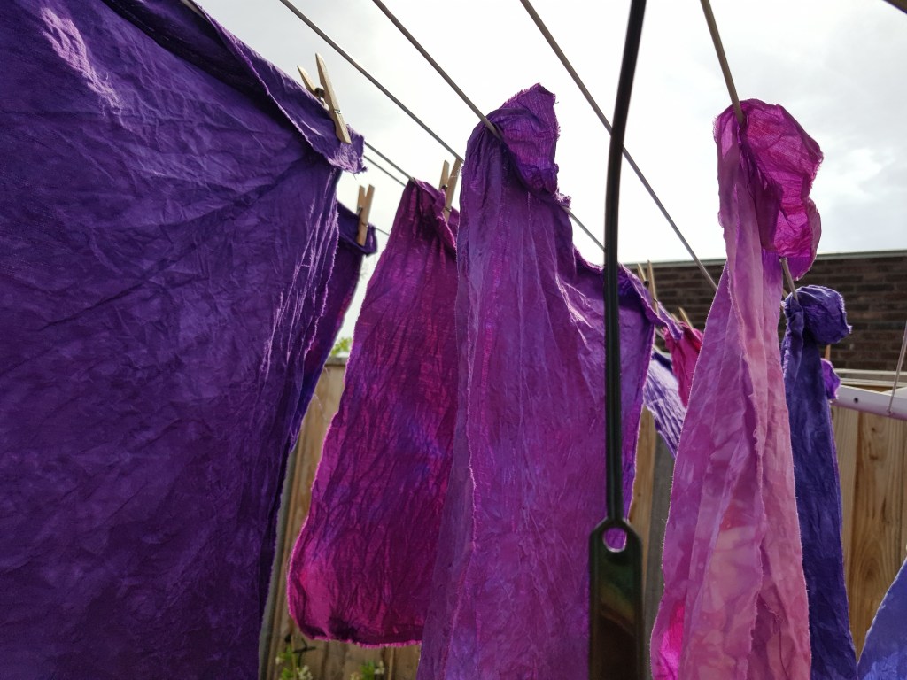Na zo’n 4 uur kon het uitspoelen beginnen en gingen de lapjes aan de waslijn.