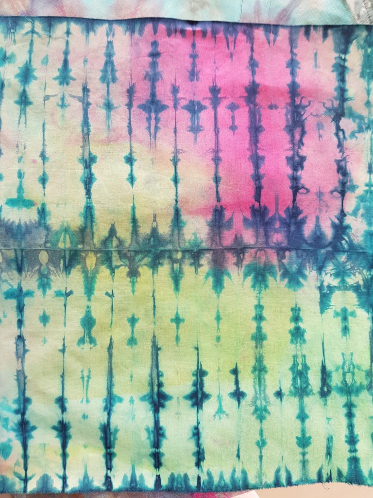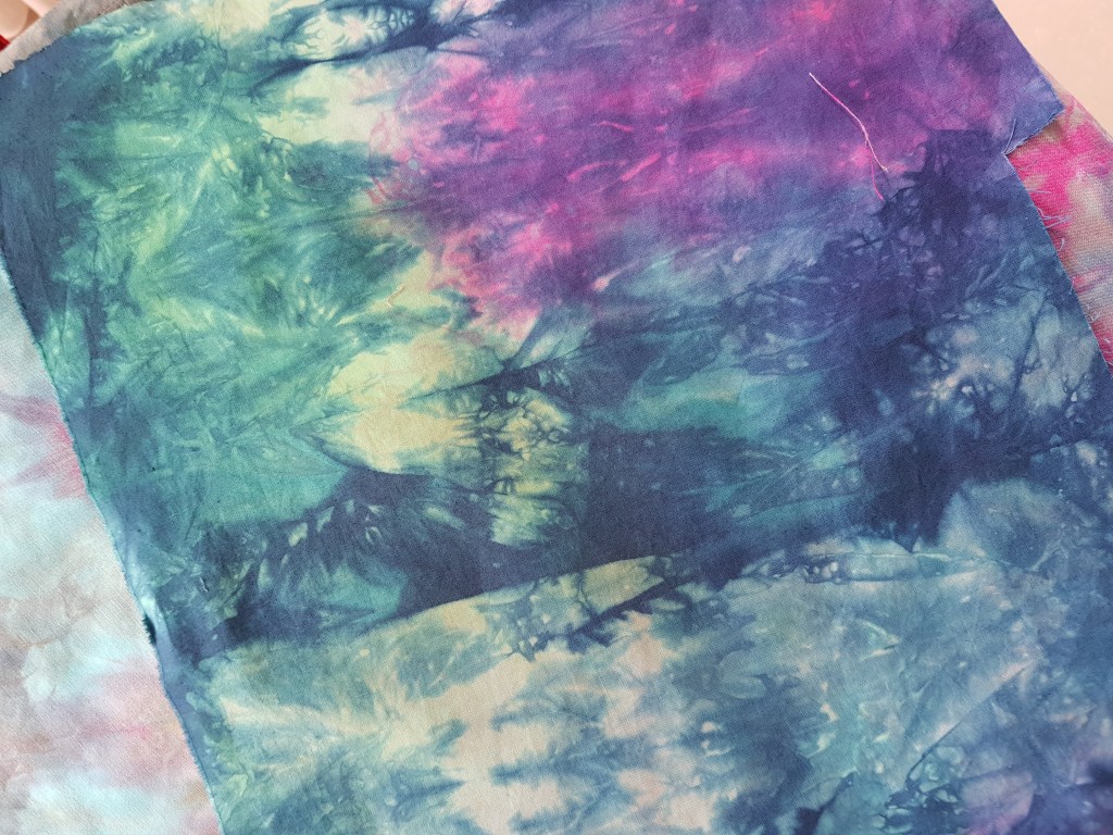 Verder nog wat lappen die ik al eerder geverfd had en een beetje saai waren, alleen groen en roze, een beetje opgepept.