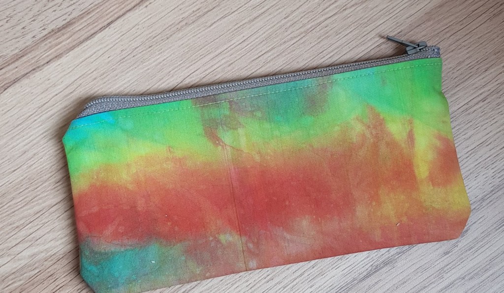 Van een eerder geverfd lapje heb ik een etuitje gemaakt.
