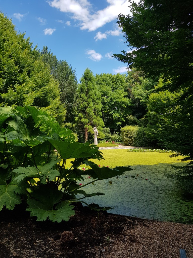 Gisteren was het weer een prachtige dag, ’s ochtends hebben we lekker in de tuin gezeten, de krant gelezen en geborduurd en ’s middags zijn we naar de zomerexpositie Beelden in Gees geweest. Een enorm grote landschapstuin waar we genoten hebben van de prachtige beplanting en beelden. De tuin staat o.a. bekend om de enorme Gunnera’s, de bladeren kunnen wel een diameter bereiken van 1,5 meter.