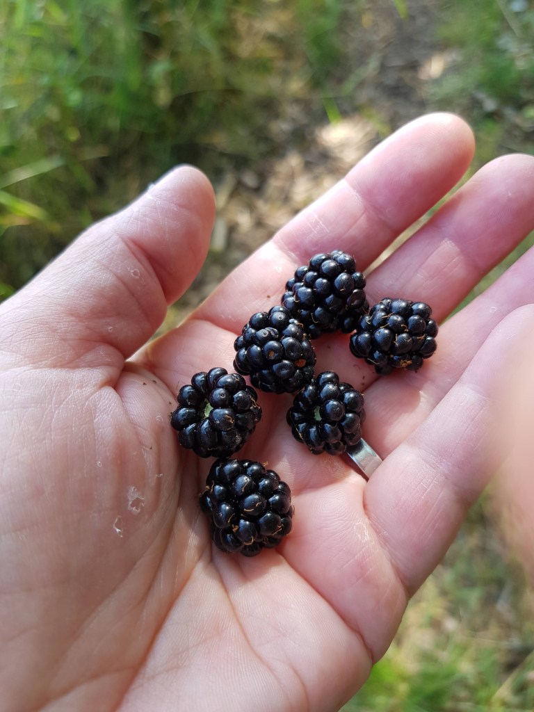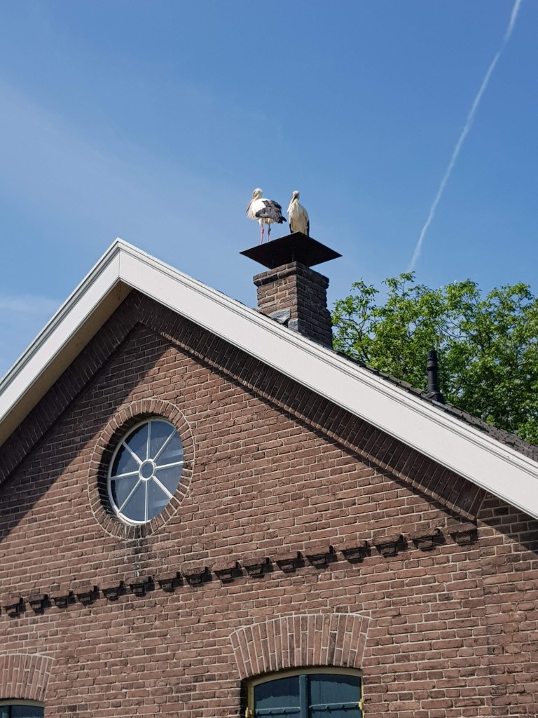 We kwamen langs bramenstruiken en konden hier regelmatig van snoepen, een eindje verderop zaten er twee ooievaars op het dak van een boerderij.