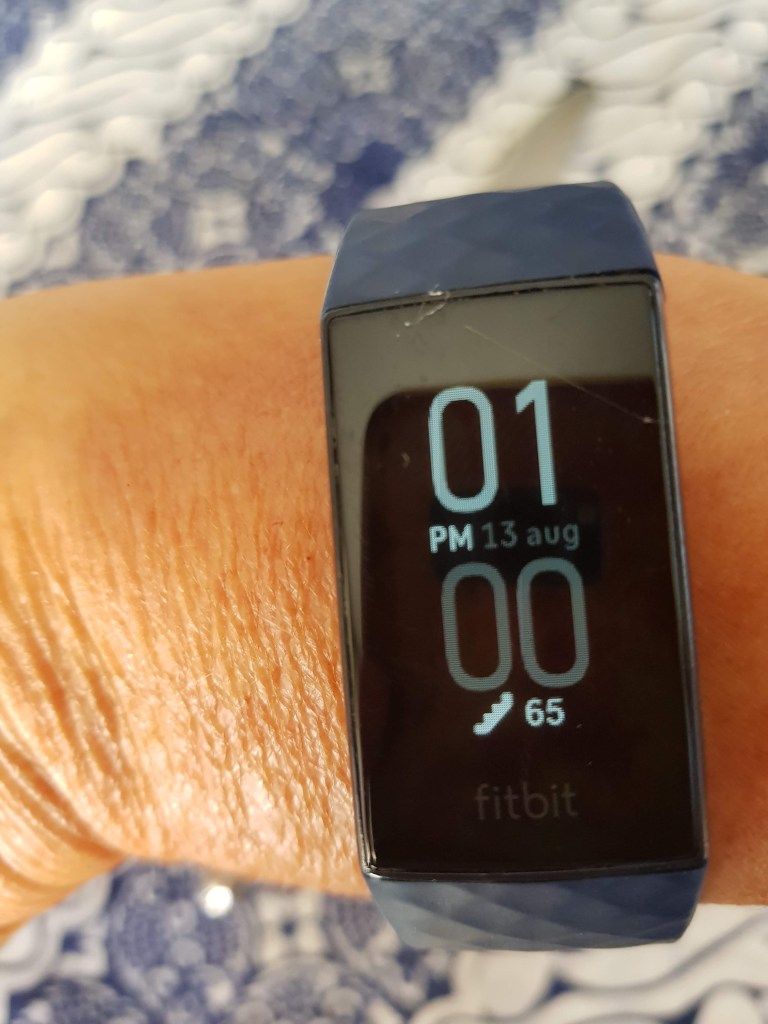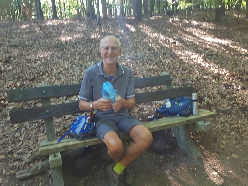 Opnieuw een warme dag, we zijn daarom wat vroeger begonnen en hebben weer een wandeling door het bos gemaakt, zodat we voor de lunch al terug waren. Ondanks de vele klimmetjes (zie de foto van mijn fitbit) hadden we weinig last van de warmte, ideaal dus.
