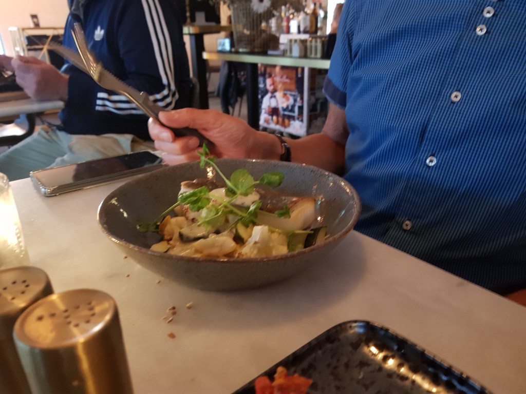 ’s Avonds zijn we met Marianne en Nico uit eten gegaan bij Llev, wat een prima keuze was. Marianne en ik hadden heerlijke garnalen uit de oven en daarna een Black Angus burger met salade en frietjes. De mannen hadden visgerechten.