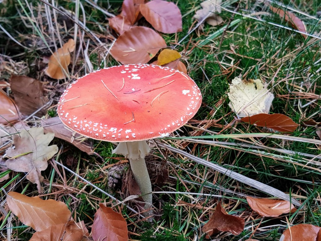 Wat een mooie wandeling. Ik heb nog geeneen rode paddenstoel gezien. Jullie gelukkig wel, het zijn nl de echte paddenstoelen hè ?