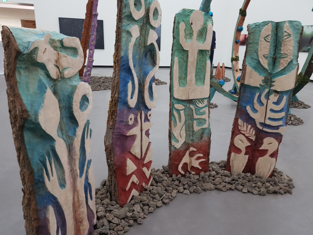 Vandaag hebben we het Museum Arnhem bezocht. Dit museum is in mei dit jaar weer open gegaan na een grote verbouwing, waarbij er een nieuwe vleugel aangebouwd is. De huidige tentoonstelling heet “Tenminste houdbaar tot”, veel kunstenaars hebben werken gemaakt m.b.t. klimaatverandering, natuurbehoud en milieuvervuiling. Het linker kunstwerk is gemaakt door de Ghanese kunstenaar Serge Attukwei Clottey van gele plastic jerrycans die voor grote problemen zorgen in Ghana.