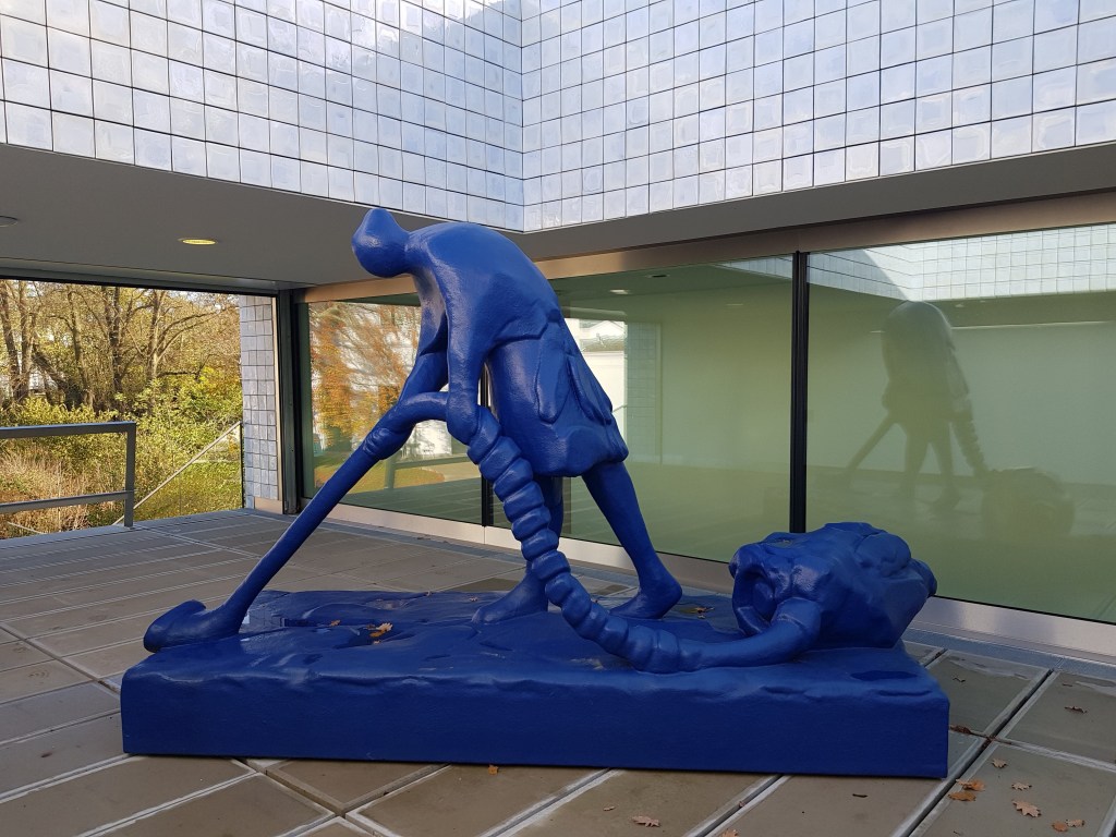 De gevels van de nieuwe vleugel zijn bekleed met 82.000 keramische tegels. Halverwege ons bezoek hebben we geluncht in café Pierre, genoemd naar oud-directeur Pierre Janssen. Tenslotte hebben we nog de beeldentuin bezocht.