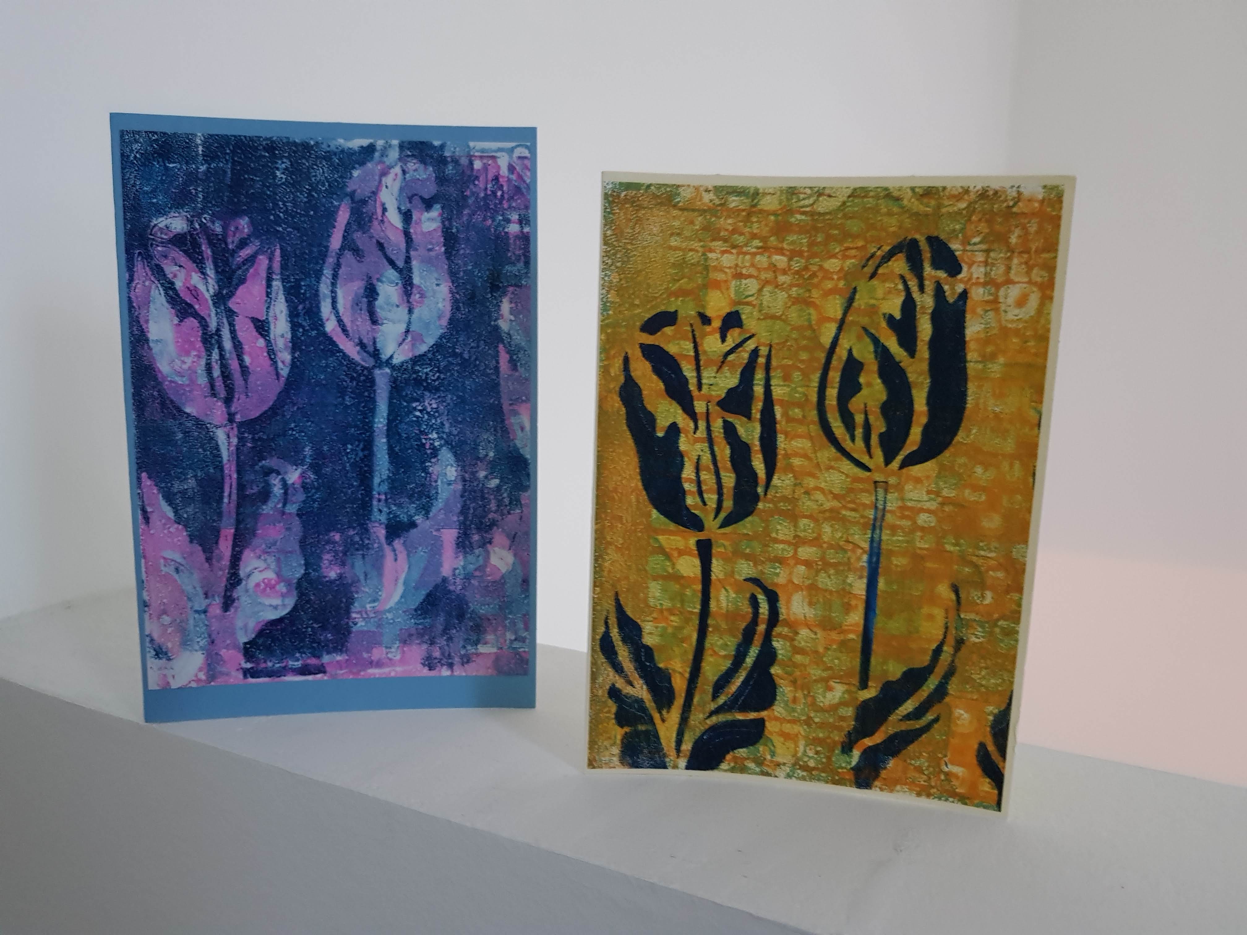 Na een paar dagen heerlijk weer is het vandaag maar een natte boel. Deze kaarten met tulpen brengen alvast een voorjaarsgevoel.
