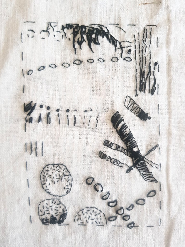 Gisteren heb ik de derde opdracht van de Steekproeverij gemaakt. Eerst met allerlei materialen en verf een A4 bestempelen en daarna een mooi stukje uitknippen. Dit namaken met garen. Ik heb het op het gezicht gedaan, dus niet precies overgetrokken, vandaar dat het niet helemaal lijkt, maar ik ben tevreden.