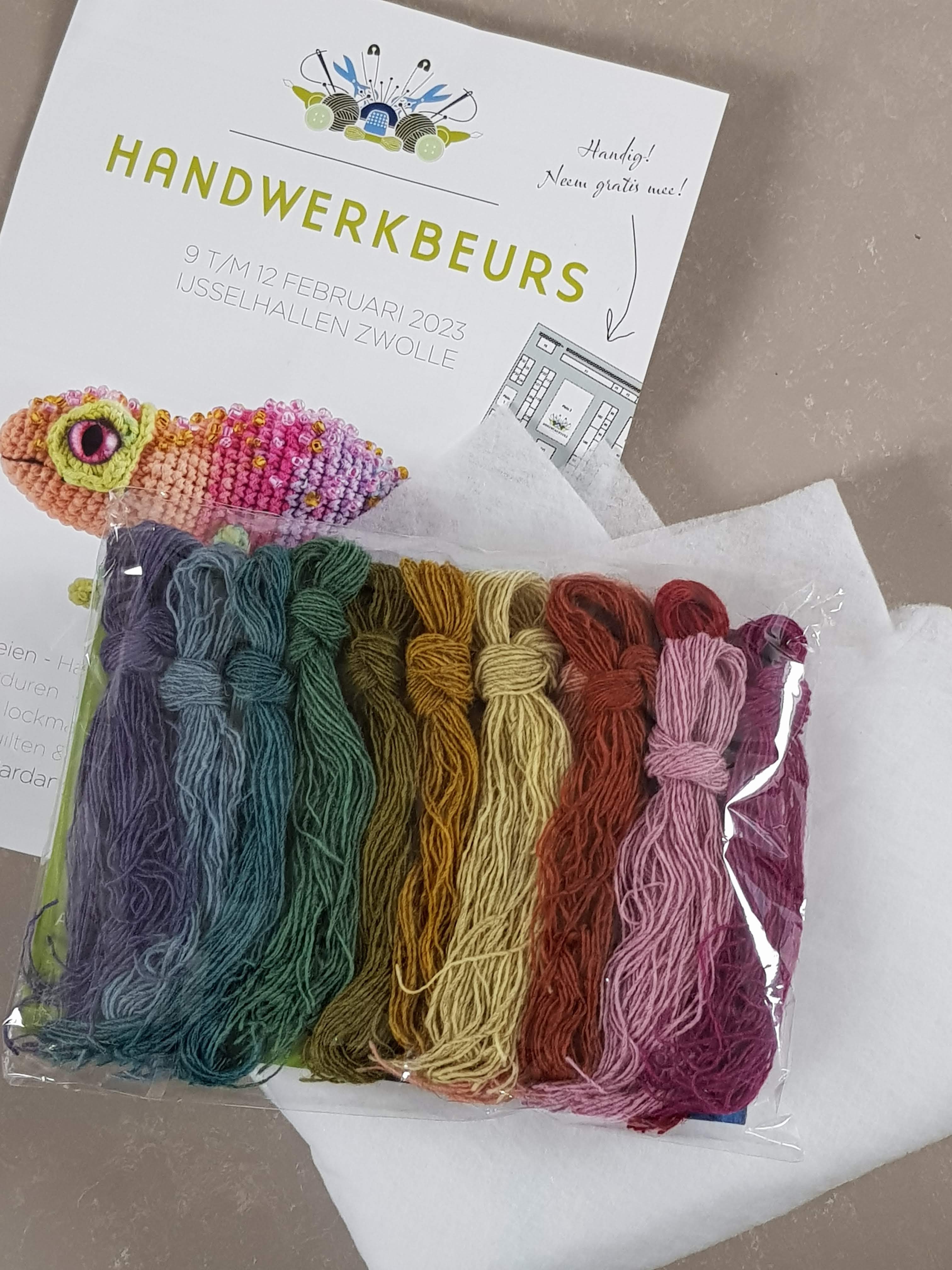 Wat een mooi garen heb je gekocht. Leuk om mee te gaan werken. Ik kon helaas niet naar de beurs, hopelijk volgend jaar weer.