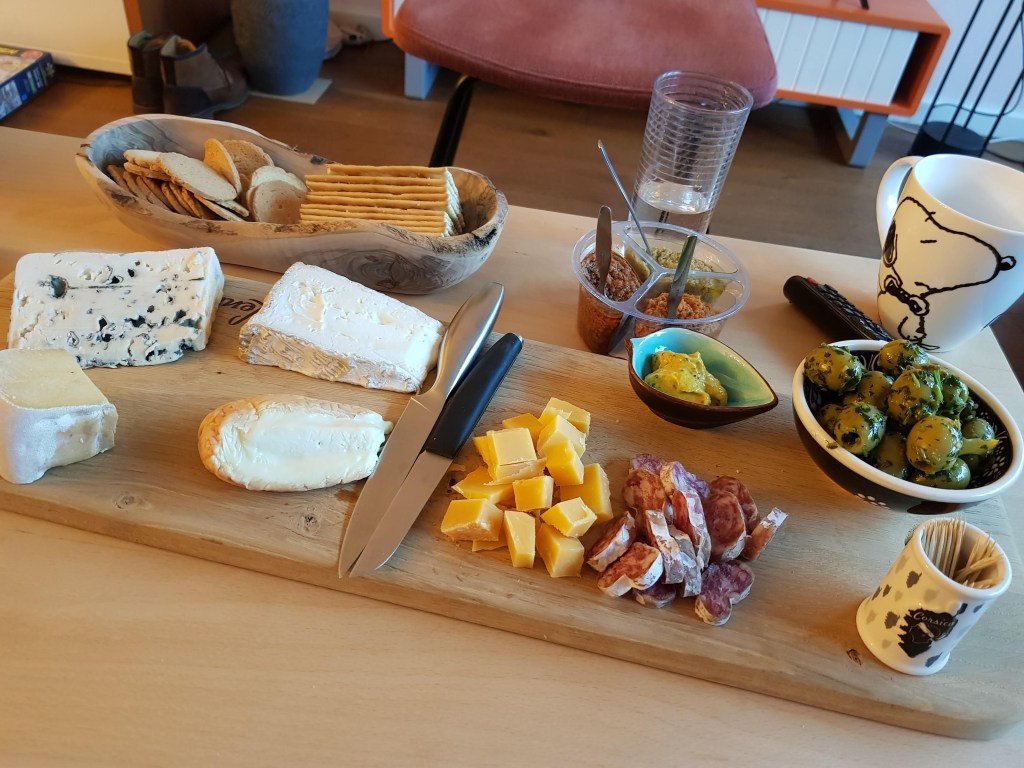Een tijdje geleden had Aat een workshop bier maken met de kinderen, Lennert had inmiddels het bier opgehaald en gistermiddag waren we bij hem uitgenodigd om het bier te proeven en te blijven eten. Bij het bier hadden we een heerlijke borrelplank. Ik houd niet zo van bier en hield het bij water, maar de rest vond het bier lekker.