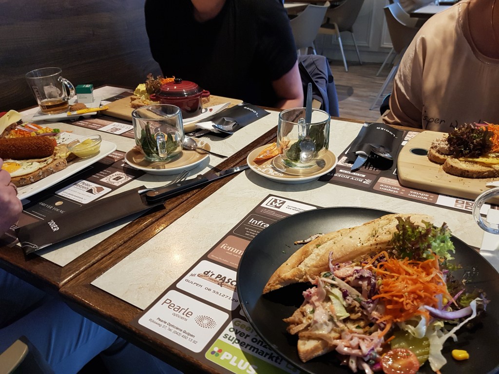 Hier hebben we heerlijk geluncht bij De Looier en daarna nog een leuke hobbywinkel bezocht waar ik wat tubetjes verf heb gekocht. Daarna zijn we weer teruggelopen en hebben Marianne en ik nog wat kaarten gemaakt van de afdrukken van gisteren.
