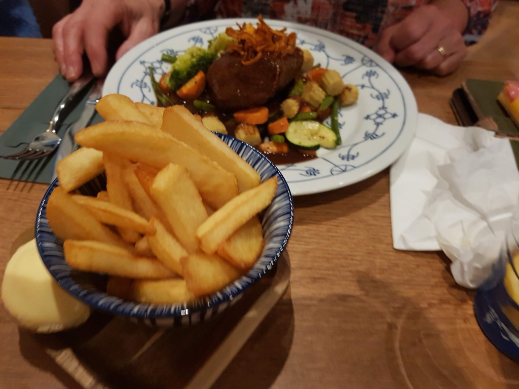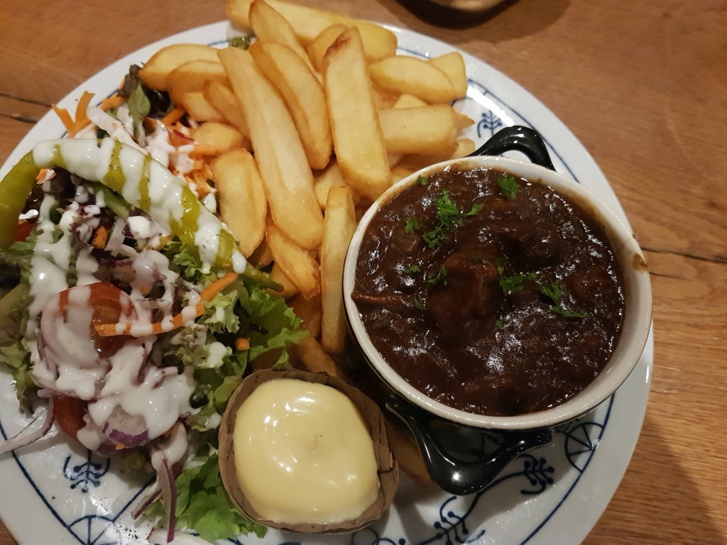 Gisteravond zijn we uit eten geweest bij Bistro Bie Jeanneke waar het gezellig druk was en waar we heerlijk hebben gegeten. Ik nam Limburgs zoervleisj wat opgediend werd in een klein pannetje en erg lekker smaakte.