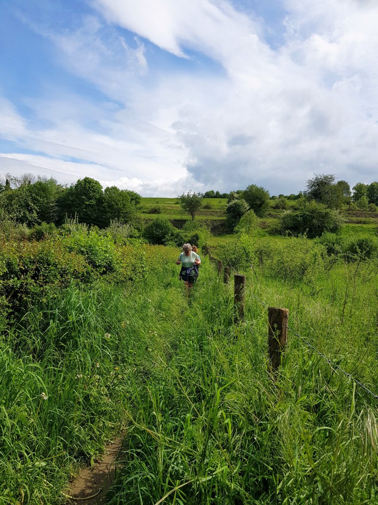 Vandaag hebben we onze laatste tocht gelopen, morgen gaan we weer naar huis. Ik moet zeggen dat het alles meevalt met mijn achillespees, ik heb weinig last gehad. Voorlopig nog wel de oefeningen blijven doen en nog niet te lange tochten maken, maar het ziet er goed uit. Je kon merken dat het vannacht weer flink geregend had, veel plassen en hier en daar behoorlijk glibberig.