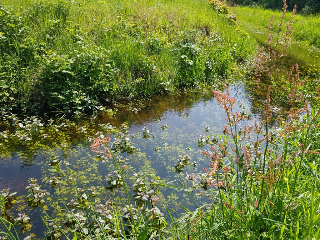 Het water in de sloten was erg helder, je kon de bodem zien.