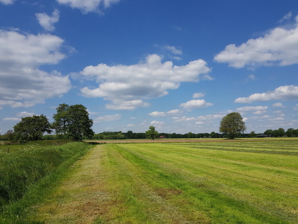 Gisteren kwam Rosanne om de trage tocht Leusveld met ons te lopen. We haalden haar op in Dieren en reden naar Eerbeek. De zon scheen en het was weer een mooie tocht met kleurige gele en witte velden, schitterende wolkenluchten, veel bos en mooie paadjes.