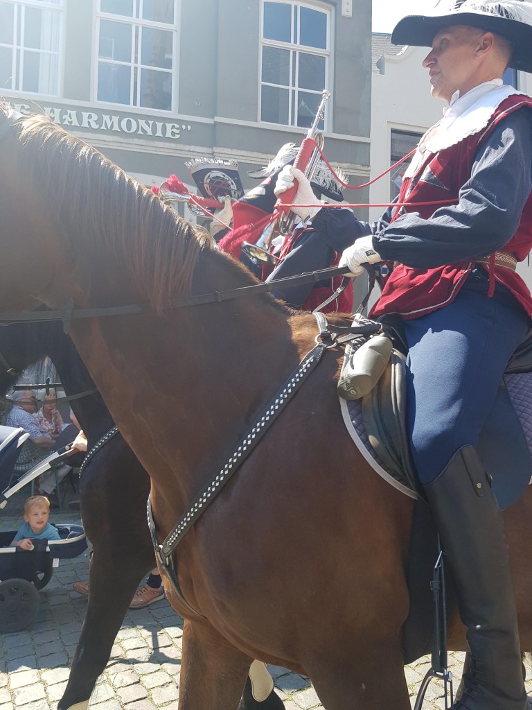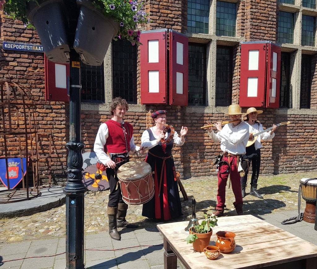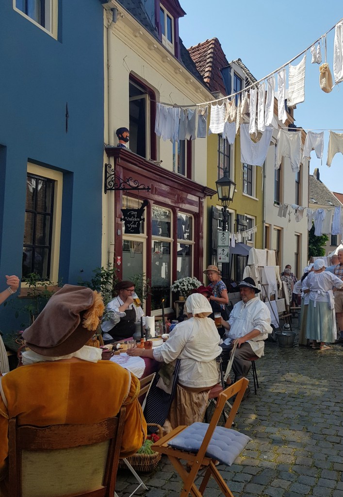 Vandaag is het Hanzefeest in Doesburg, vanmorgen zijn we wezen kijken voordat het al te warm werd. Honderden figuranten in prachtige kleding, veel muziek en kraampjes met van alles en nog wat. Een gezellige boel, maar wat zullen de mensen in die kledij het warm hebben!