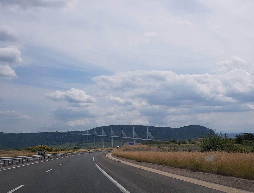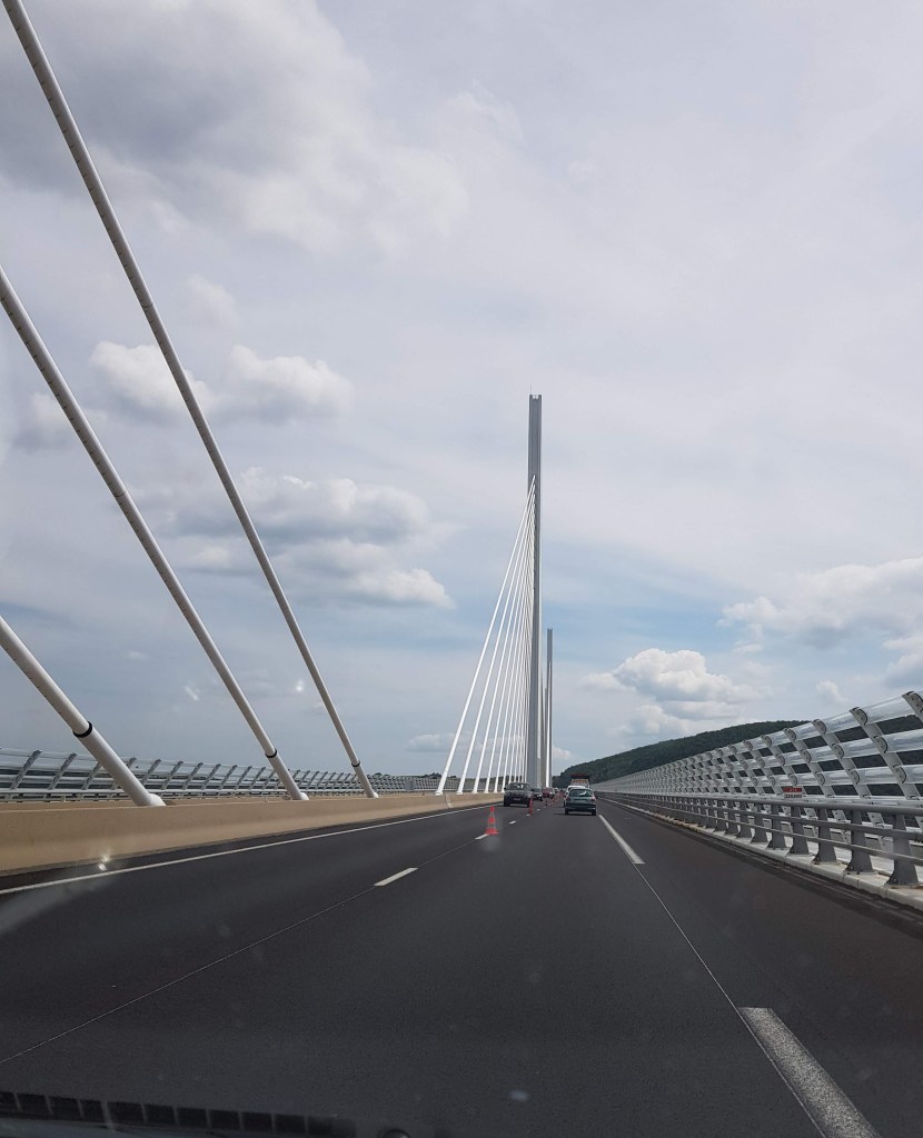 Toen zus Lia gisteren mijn blog las kwam ze erachter dat ze jaren geleden ook hier gelogeerd had. Na een heerlijk ontbijt de volgende ochtend vertrokken we naar de Aveyron waar we de franse valleientocht gaan lopen. We moesten over het viaduct bij Millau, een indrukwekkend bouwwerk.