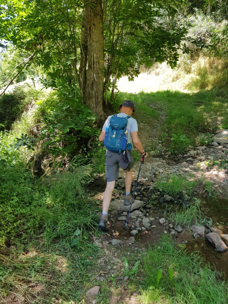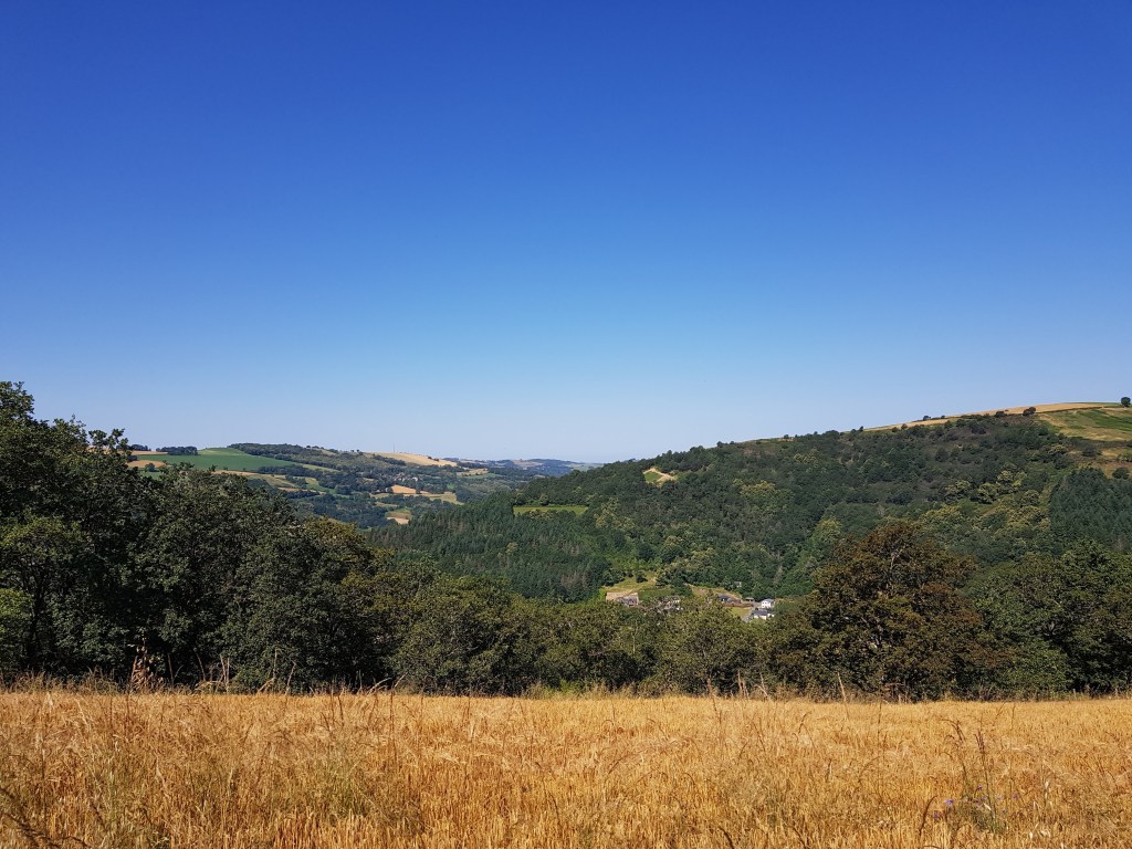 Onze eerste overnachting was bij La Libaudié bij Rob en Ciska, ontzettend aardige mensen. Zij runnen de kamers, een gîte en een kleine camping nu voor het 6e seizoen. Ook hier aten we weer met een flink gezelschap aan een lange tafel, er waren meer mensen die kwamen om te wandelen, maar ook mensen die 3 weken daar bleven. Vanmorgen was onze 1e wandeldag en Rob bood aan ons eerst een eindje verderop af te zetten, hij vond dat we eerst moesten wennen aan de hoogteverschillen en niet gelijk te ver moesten lopen. Dit is zo leuk aan deze reis, niets moet, je kan altijd een stukje meerijden of een dagje luieren als het b.v. slecht weer is, alles is mogelijk. Na een uitgebreid ontbijt konden we een lunchpakket samenstellen en op pad.