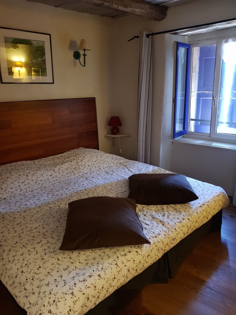Gisteren hebben we gegeten en geslapen bij le Mas des Eglantines, gerund door een Belgisch echtpaar. Na een welkomstdrankje en een verfrissende douche hebben we gezellig zitten praten met een echtpaar uit Limburg die aan het fietsen waren van het ene huis naar het andere. Respect hoor, geen elektrische fiets en soms 80 km per dag!