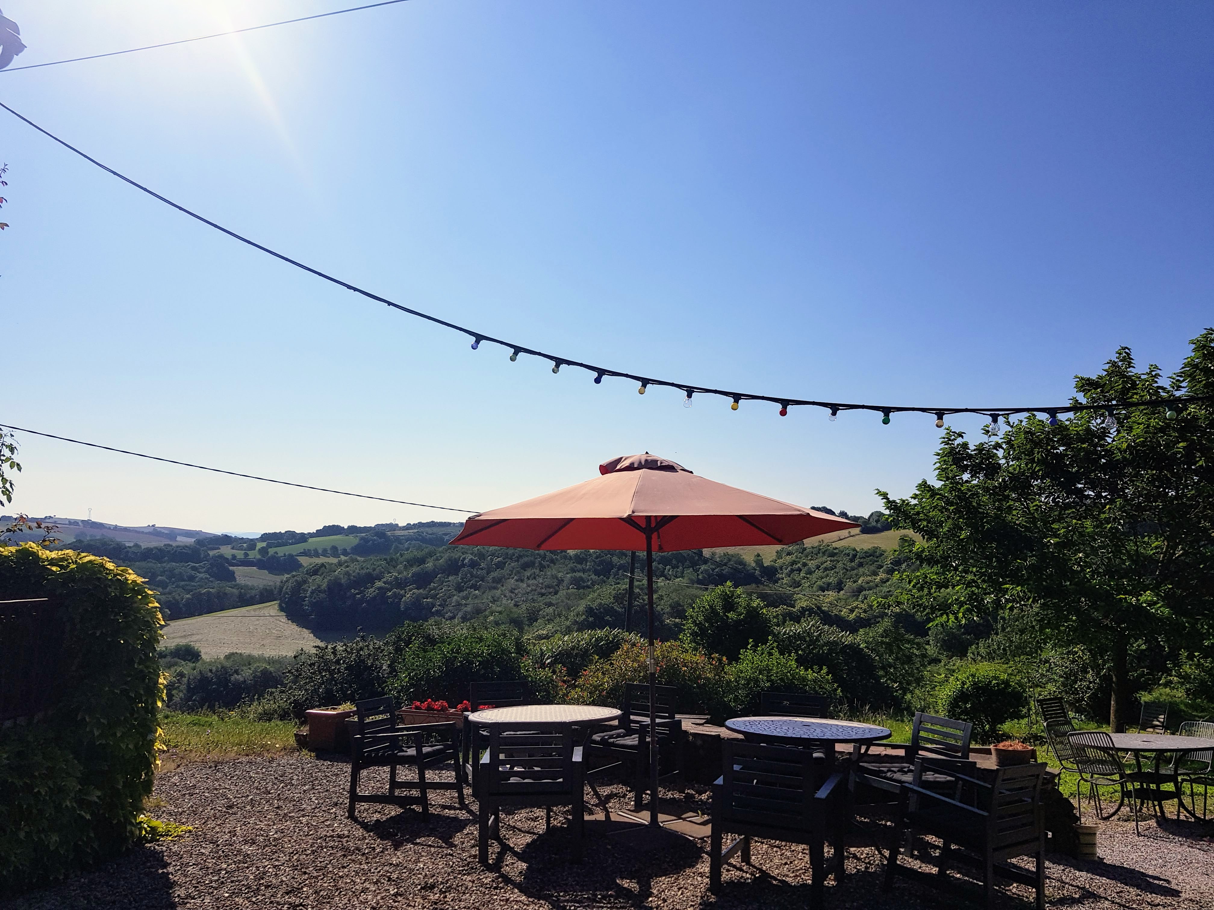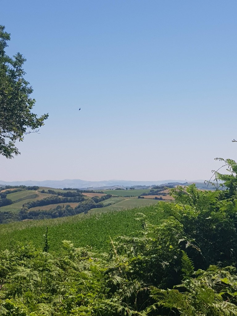 ‘s Avonds zaten we met zijn achten aan een heerlijk culinair diner en vanmorgen na het ontbijt kregen we weer een uitgebreid lunchpakket mee. Dit is het uitzicht bij onze chambre d’hote.