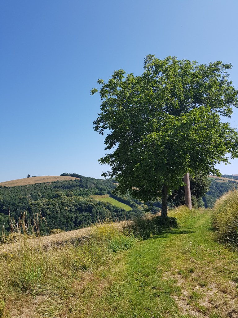 Rond kwart voor 4 kwamen we aan bij ons volgende adres en even later kwamen hier ook de wandelaars aan die we gisteren hadden ontmoet, zij liepen een iets andere route. Nu even lekker genieten van ons terrasje bij de gîte met alweer een prachtig uitzicht.