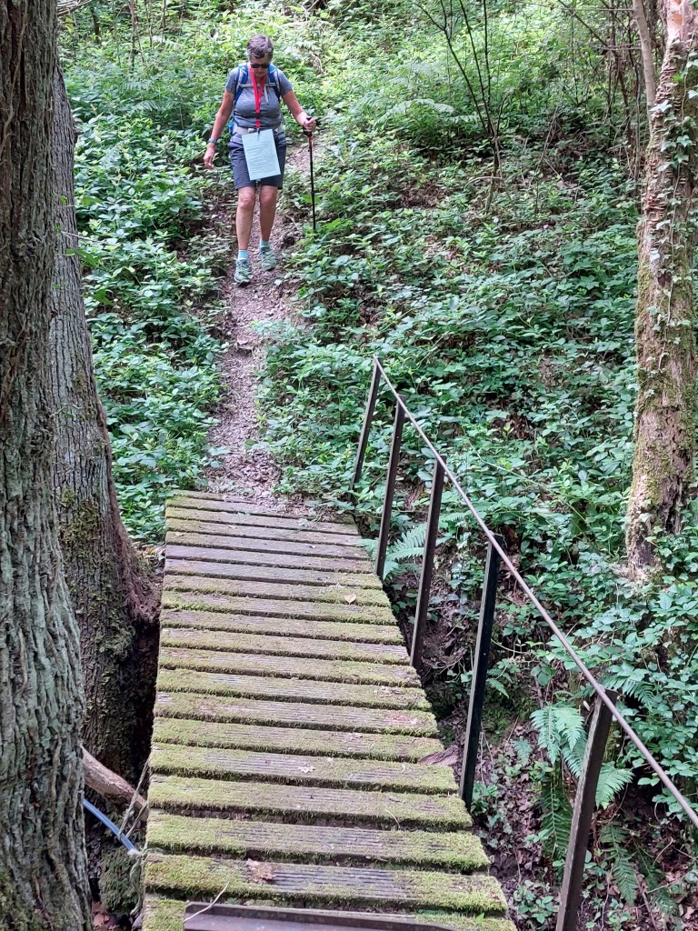 Verser kon niet, de wortels, bloemkool en aardappels kwamen net uit de moestuin, erbij hadden we meerval met een heerlijke saus. De 3 dames hadden al 5x eerder de valleientocht gelopen, maar de laatste keer was inmiddels 5 jaar geleden. Er is in die tussentijd al veel veranderd en het ziet er naar uit dat dit waarschijnlijk het laatste jaar is, erg jammer. Na een heerlijke nachtrust hebben we vandaag een tocht in de omgeving gemaakt, de sprookjesbosroute. Toen we begonnen was het rond de 21 graden, maar vanmiddag liep de temperatuur al snel op tot 26 graden.