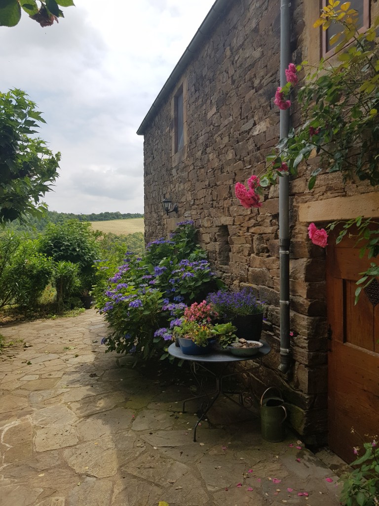 Gisteren kwamen we aan bij Albugue waar we deze keer een gîte tot onze beschikking hadden. Ook weer een prachtige plek waar de ouders van Jean-Marie, de huidige eigenaar, begonnen zijn met niets en waar nu 3 gîtes en een kleine camping zijn. ‘s Avonds aten we weer gezellig met zijn allen op het terras, de Belgen die we de dag ervoor al ontmoet hadden, twee mensen van de camping, drie Belgische dames en onze gastvrouw Jule.
