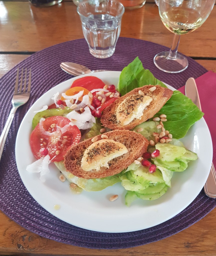 We verblijven twee nachten in La Cazette bij Lidy die alle tochten organiseert als je boekt. Wij wilden 8 nachten en dan vraagt zij de andere accomodaties of en wanneer ze ruimte hebben en zo breit ze de tochten aan elkaar. Zij vertelde trouwens dat ze voorlopig nog niet van plan is te stoppen met de valleientocht, gelukkig maar, het is echt aan te bevelen. We hadden weer een heerlijk diner met de Belgische vriendinnen, de fietsers uit Limburg en 2 campinggasten.