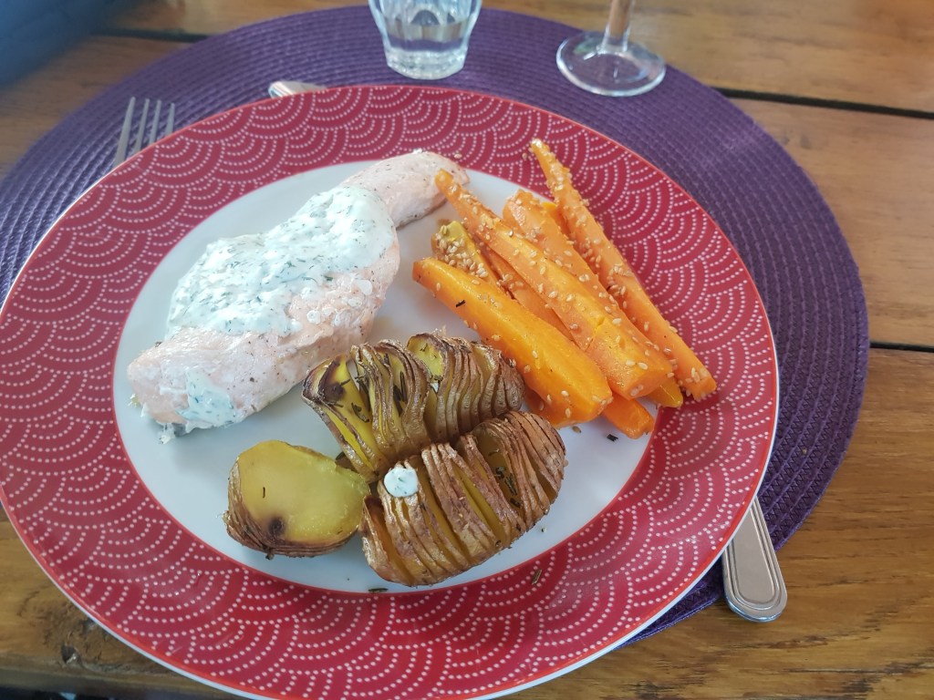 Vervolgens steeds rechtdoor langs de rivier tot de steile klim naar onze gîte waar we na een lekkere douche konden uitrusten.