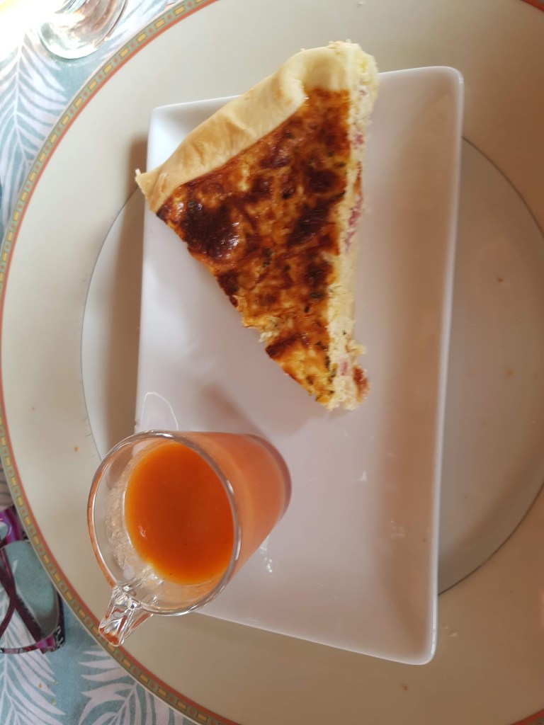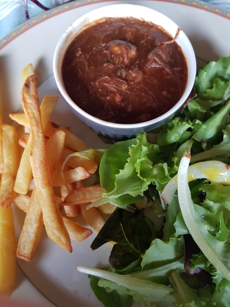 Het weer was gisteravond inderdaad opgeklaard zodat we met zijn allen buiten konden eten, al zaten we in verband met de harde wind wel op een ander terras. Het was voor ons de laatste avond en zoals gewoonlijk hebben we weer heerlijk gegeten. Marthy reageerde gisteren met: wat kunnen die Fransen toch lekker koken. En ook al aten we alleen bij Nederlanders en Vlamingen, ze zullen best beïnvloed zijn omdat ze al zo lang hier wonen. We hebben elke keer heerlijk gegeten en heel afwisselend.