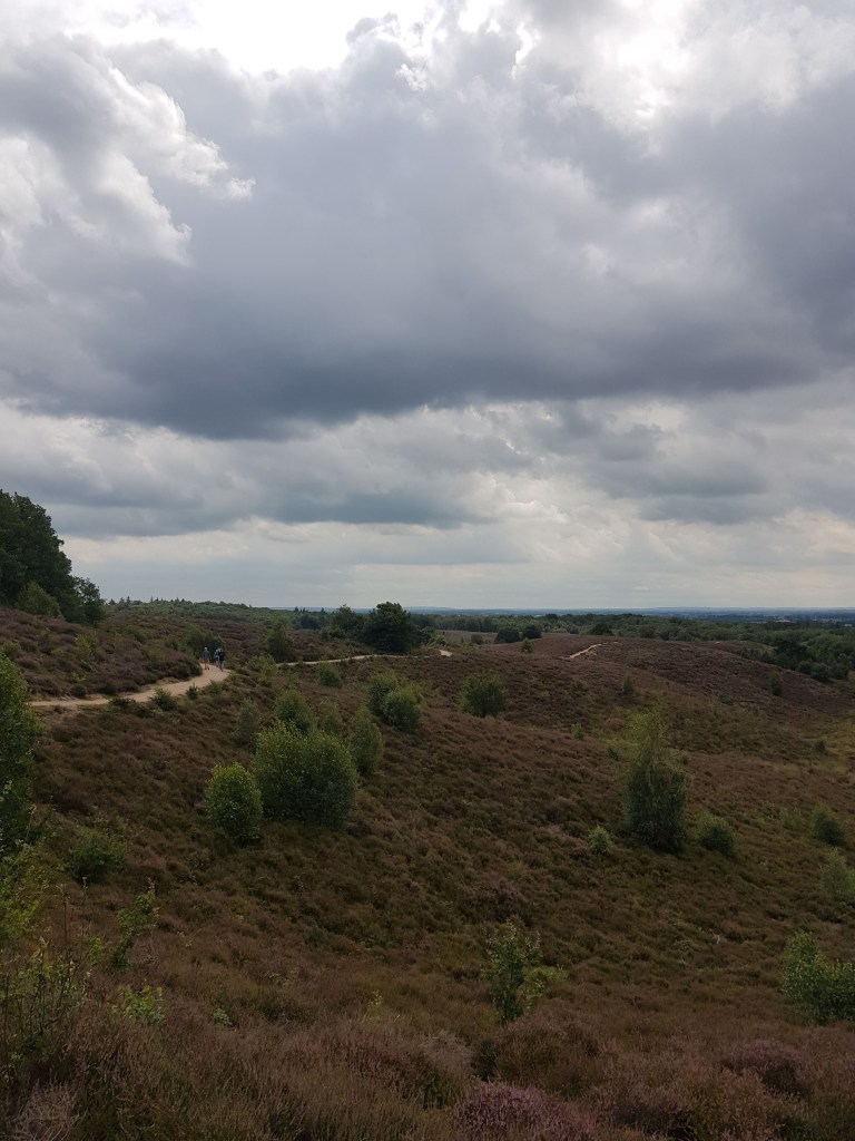 Vervolgens door het bos naar de Posbank waar we onze boterhammen hebben gegeten, hier en daar begint de hei al langzaam te kleuren.