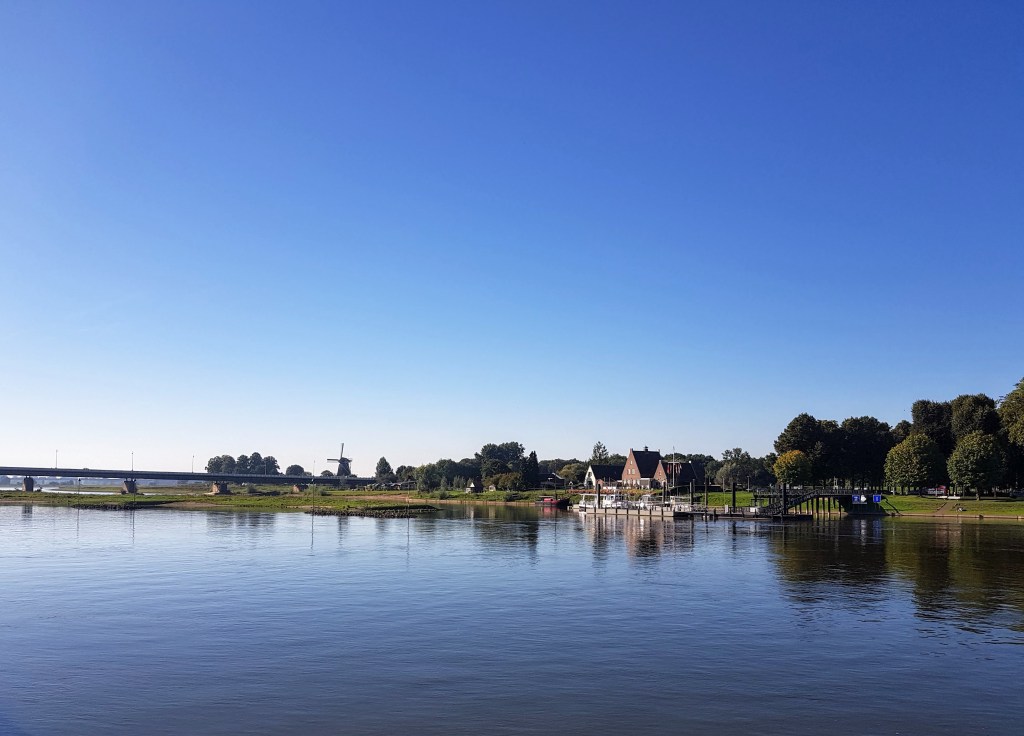 Toen natuurlijk naar de IJssel waar we vorige keer met het pontje zijn overgestoken. Het eerste stuk liepen we langs het water, gelukkig was het nog niet al te warm omdat we al vroeg waren begonnen, want hier was geen beschutting.