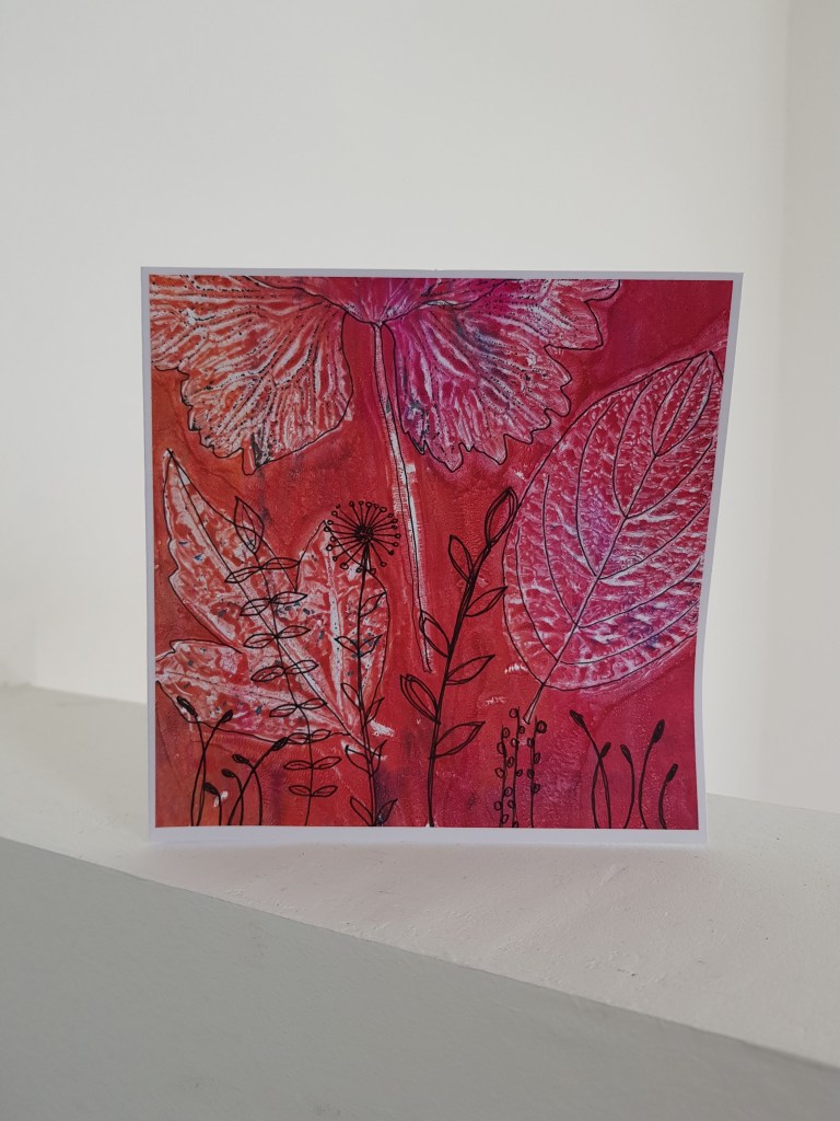 Gelukkig Janny dat er toch vooruitgang voelbaar is. Het is ook niet niks, zowel lichamelijk maar ook geestelijk. Je komt toch even in een mallemolen terecht. Heel fijn nu na een paar dagen te voelen dat het al een stuk beter gaat. En wat goed van je dat je inmiddels alweer met de Gelli plate en bladeren aan de slag bent gegaan om kaarten te maken. Weer fraaie exemplaren laat je zien, stuk voor stuk zijn het juweeltjes geworden. Ook de rode is heel speciaal, prachtig!!!