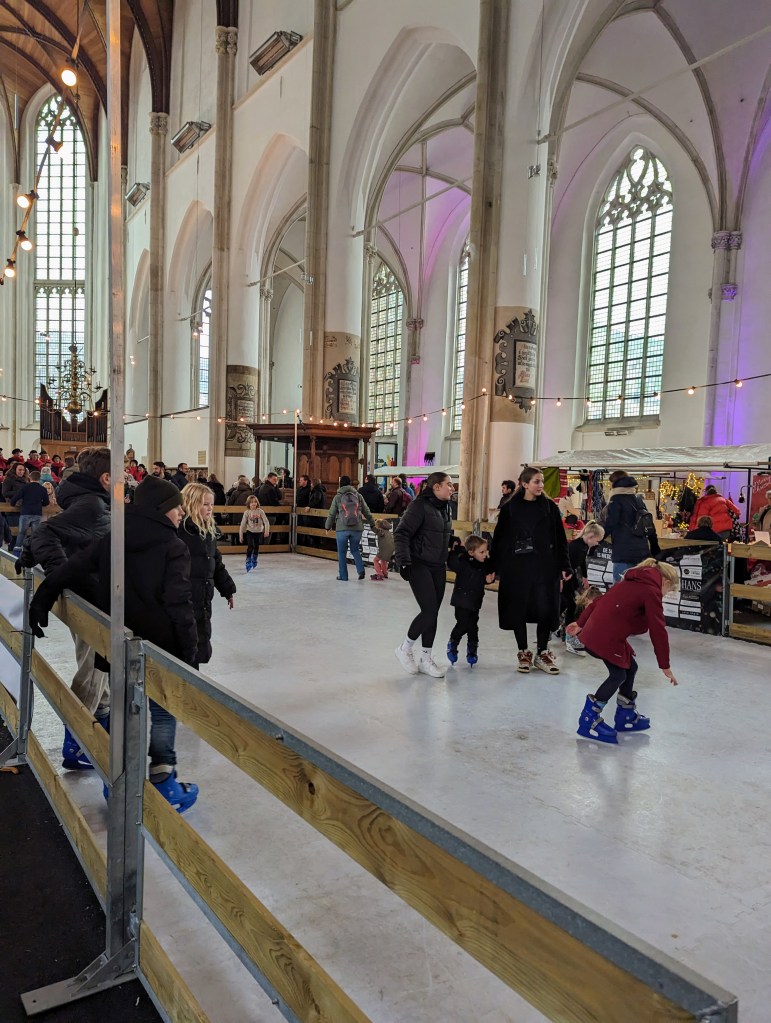 Nadat mijn zussen vertrokken waren zaterdag ben ik nog even naar de kerstmarkt in Doesburg geweest. In de Martinikerk was een schaatsbaan gemaakt en eromheen stonden diverse kraampjes. Toen ik kwam waren mijn kerststerren al bijna allemaal verkocht, de kaarten liepen nog niet zo hard maar misschien later nog.