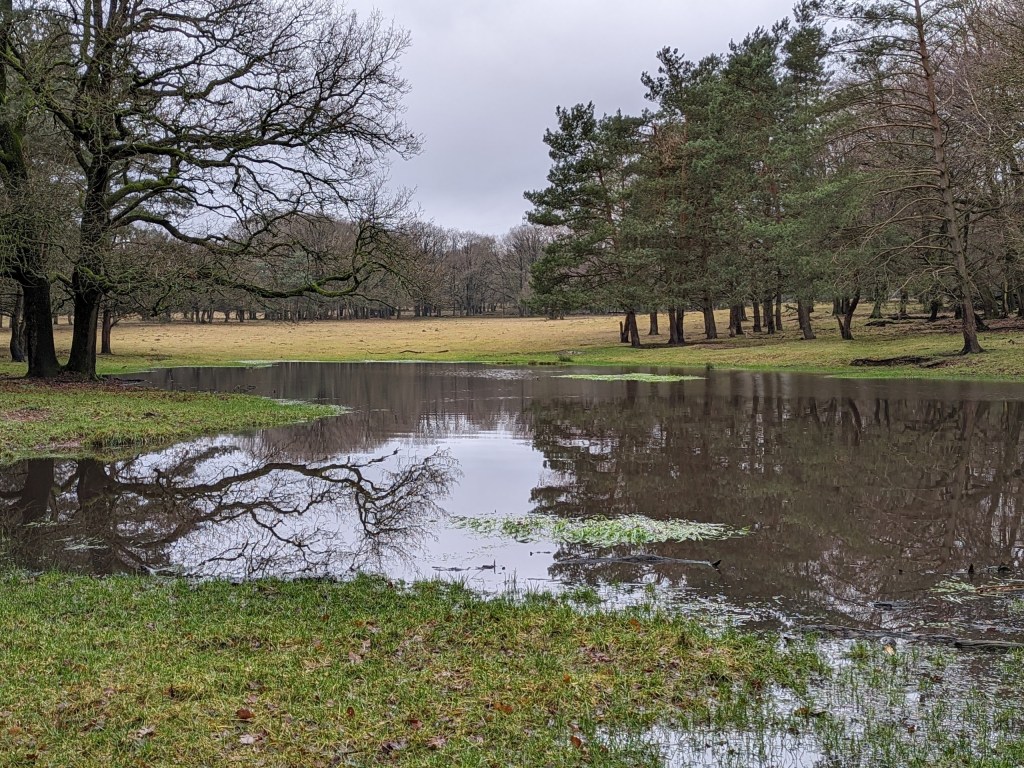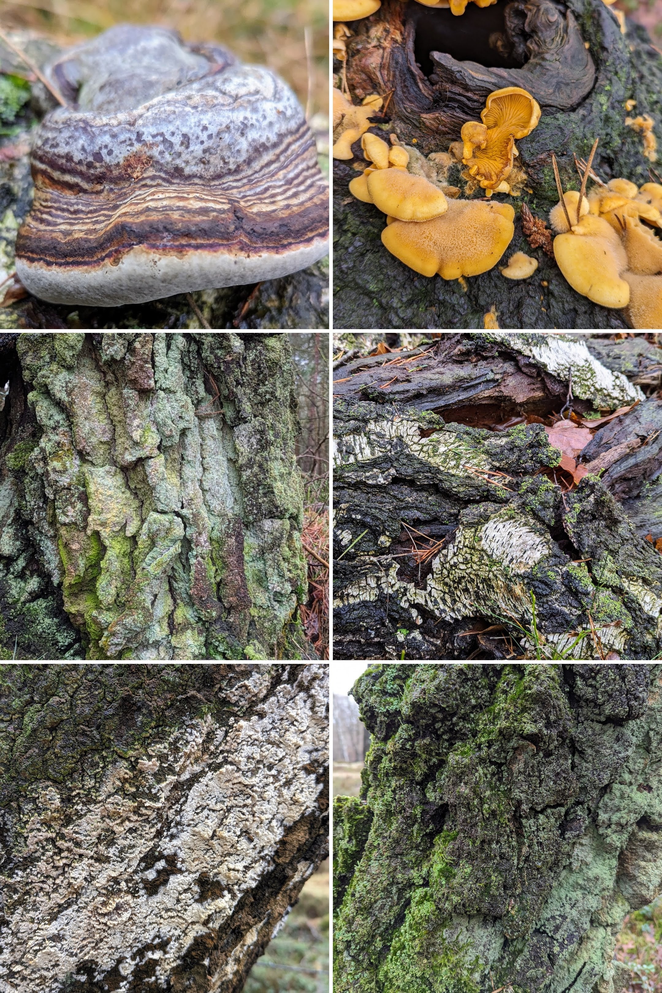 Hier en daar lagen wel wat plassen, maar op de paden was het goed te doen. Oude bomen met verweerde stammen zijn prachtig en op dood hout groeit van alles.