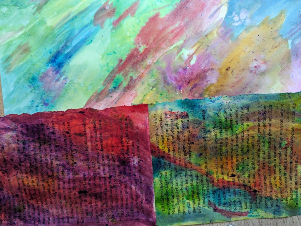 Wat gaaf! Ik heb nog nooit van brusho gehoord. Die stukjes op het oude boekpapier vind ik het mooist; ik denk omdat ze in een bepaalde kleurnuance zijn gemaakt…
