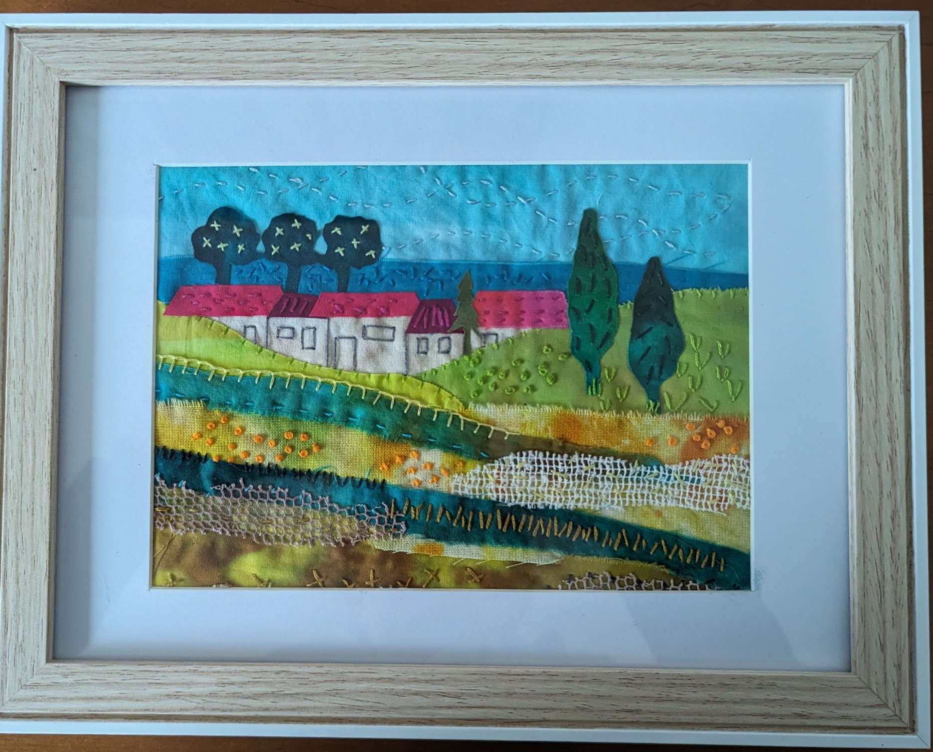 Ik vond het eerste landschapje zo leuk om te maken dat ik er nog eentje gemaakt heb in ongeveer dezelfde kleurstelling. Ik denk dat ik ze onder elkaar aan de muur ga hangen.