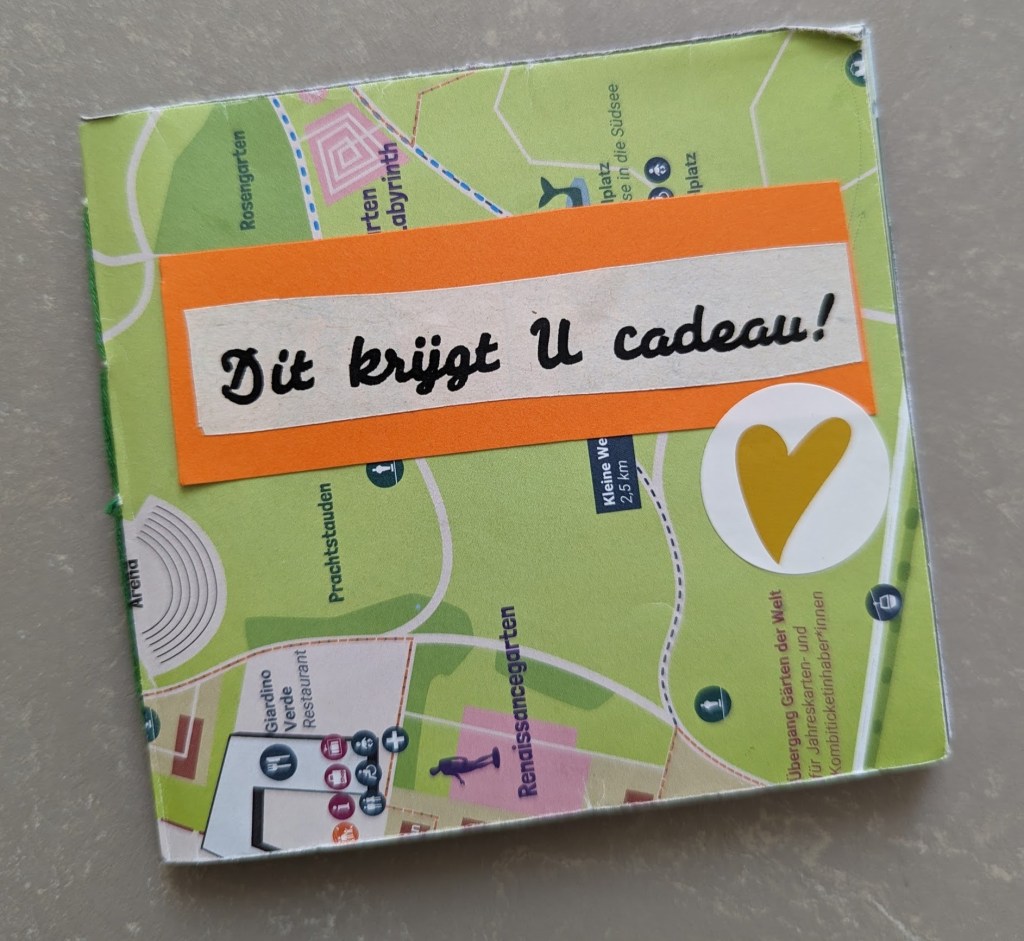 Het geld is bedoeld voor planten, vandaar de twee kleine (kunst)plantjes, erg leuk gedaan.